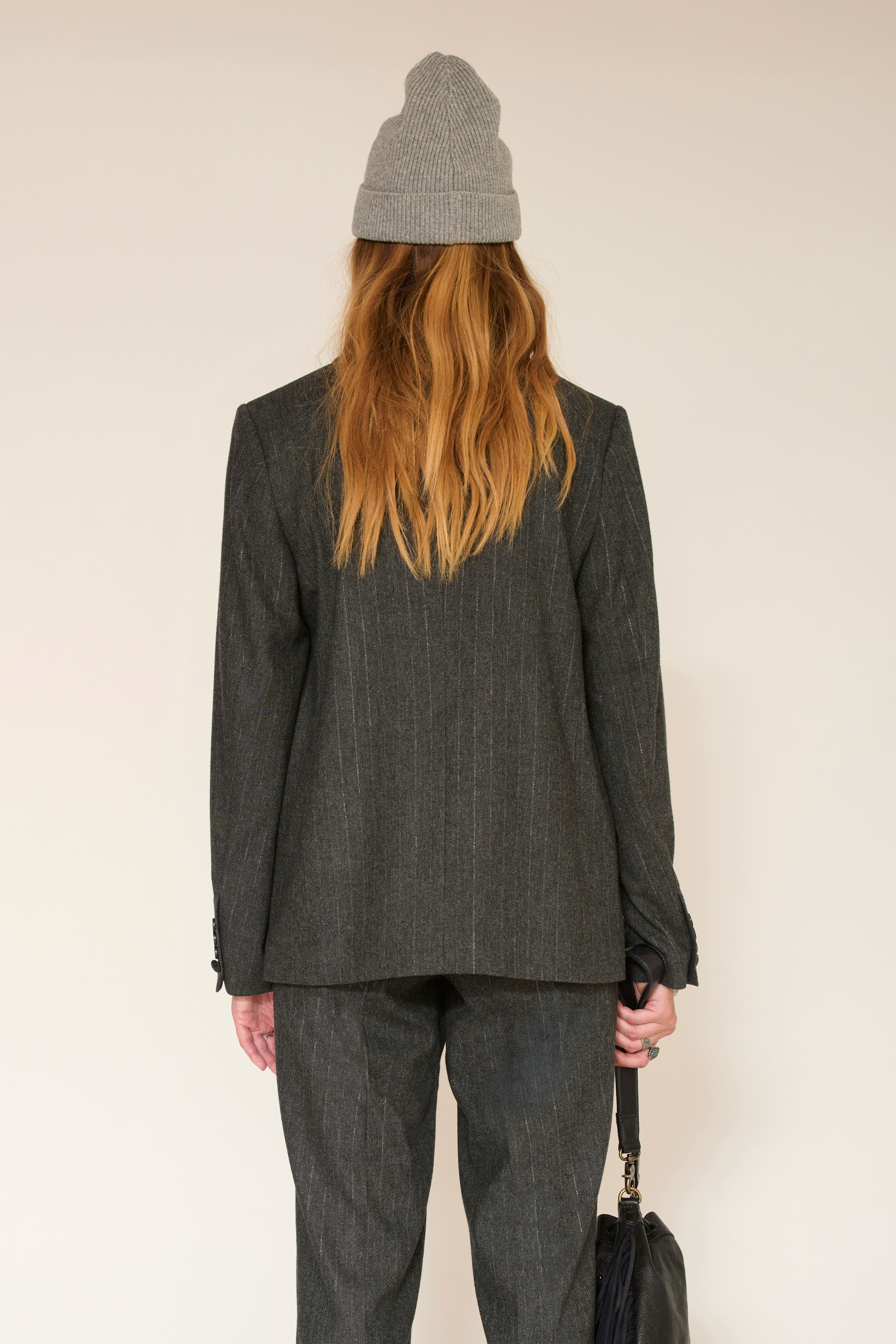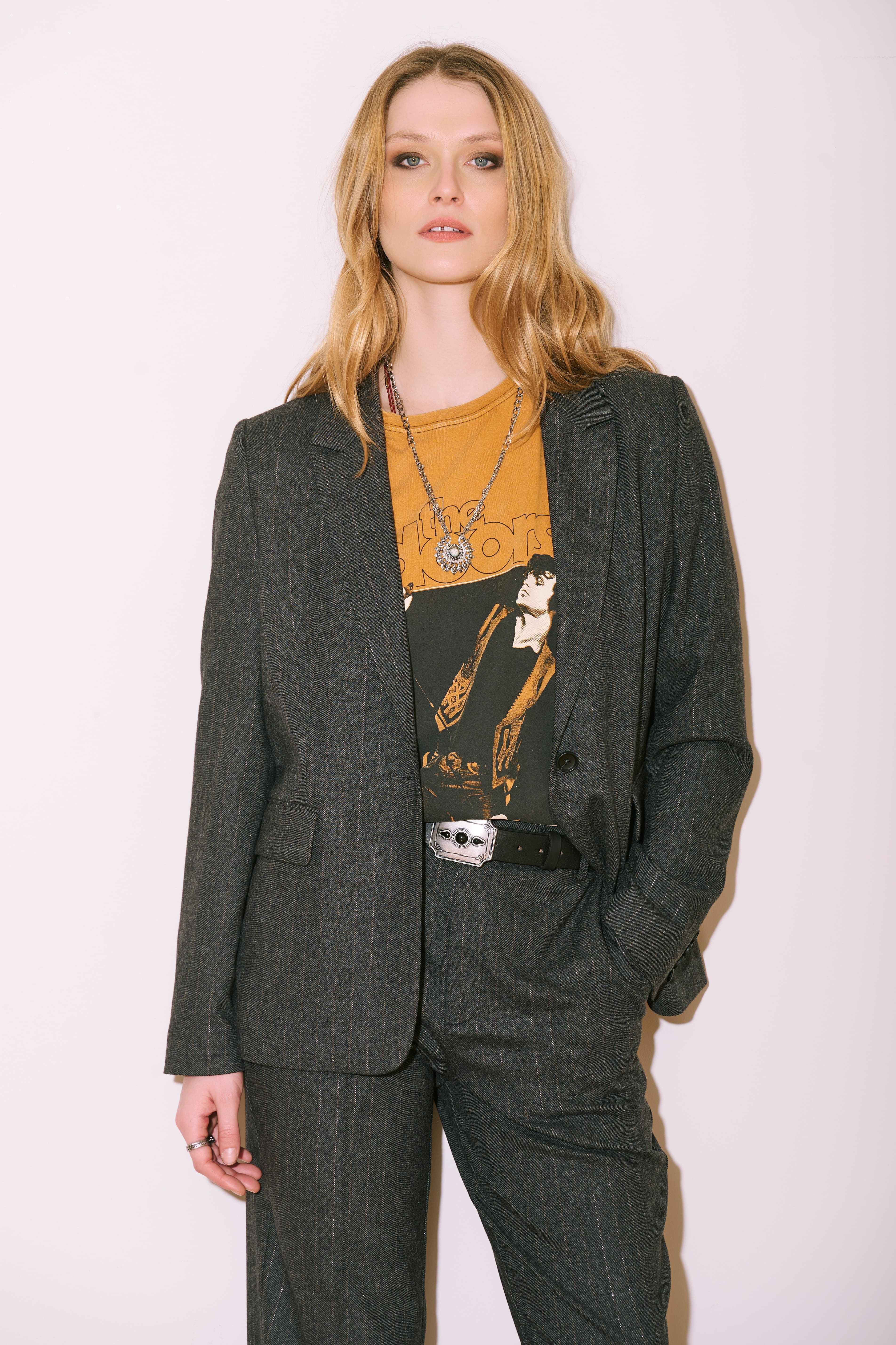 Cette veste se décline dans une teinte grise classique, intemporelle et polyvalente, idéale pour s'associer avec différentes tenues. Elle présente un design structuré avec des épaules légèrement rembourrées, des revers bien définis et des poches latérales discrètes, ajoutant une touche de sophistication.