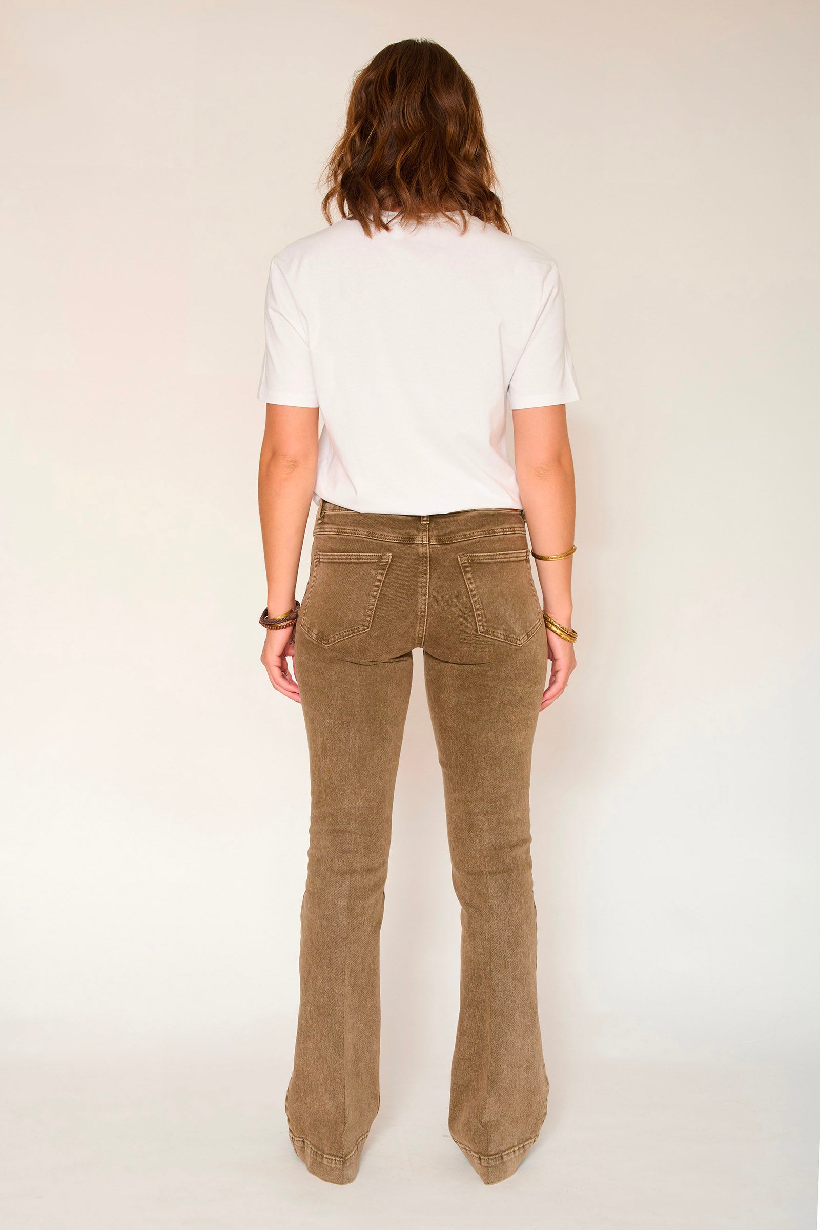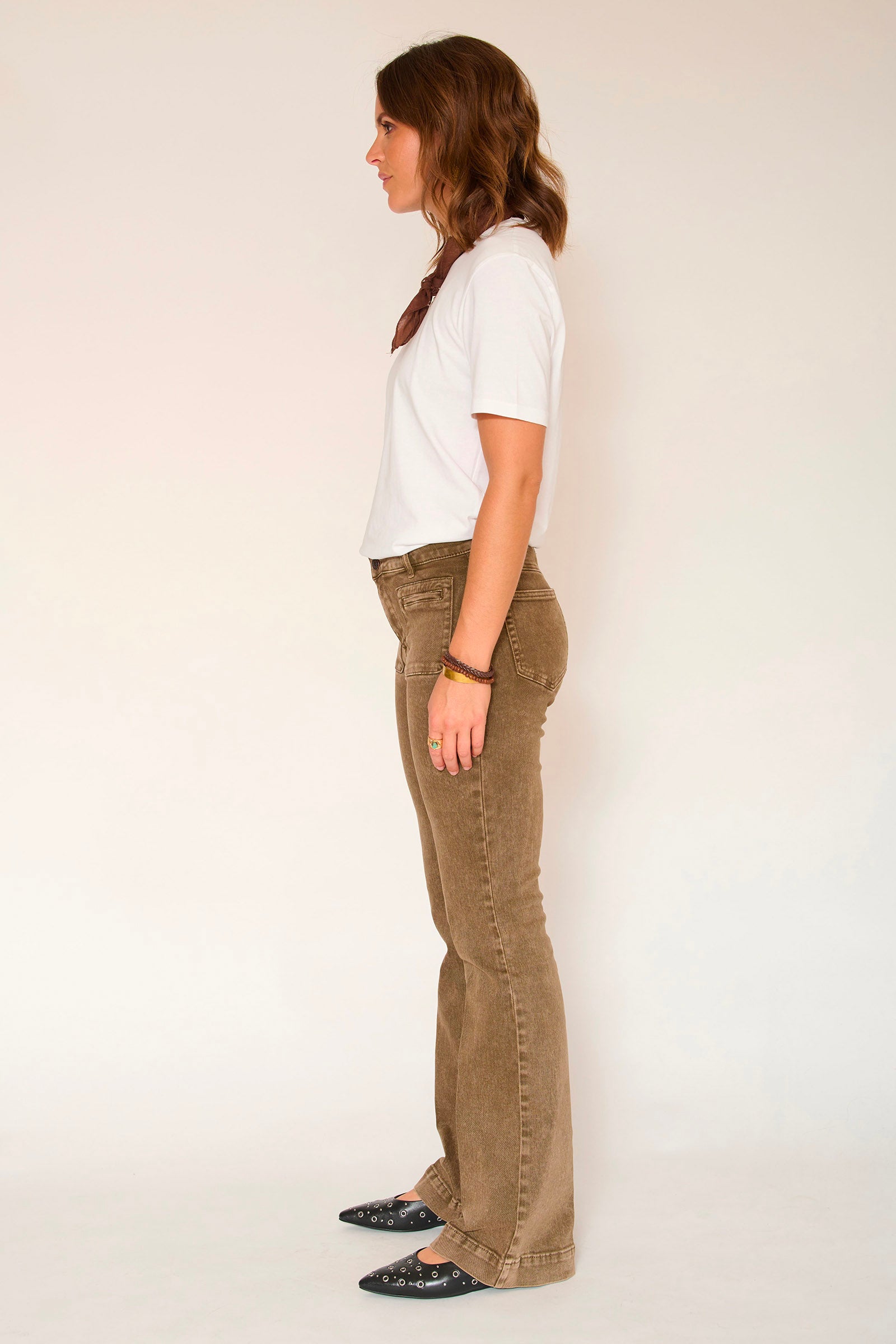 Le jean flare "THE DIANA PACIFIC DRILL NUTS" se distingue par sa coupe évasée, offrant une silhouette rétro et élégante. Fabriqué en drill, ce tissu robuste assure une durabilité tout en garantissant un confort optimal.