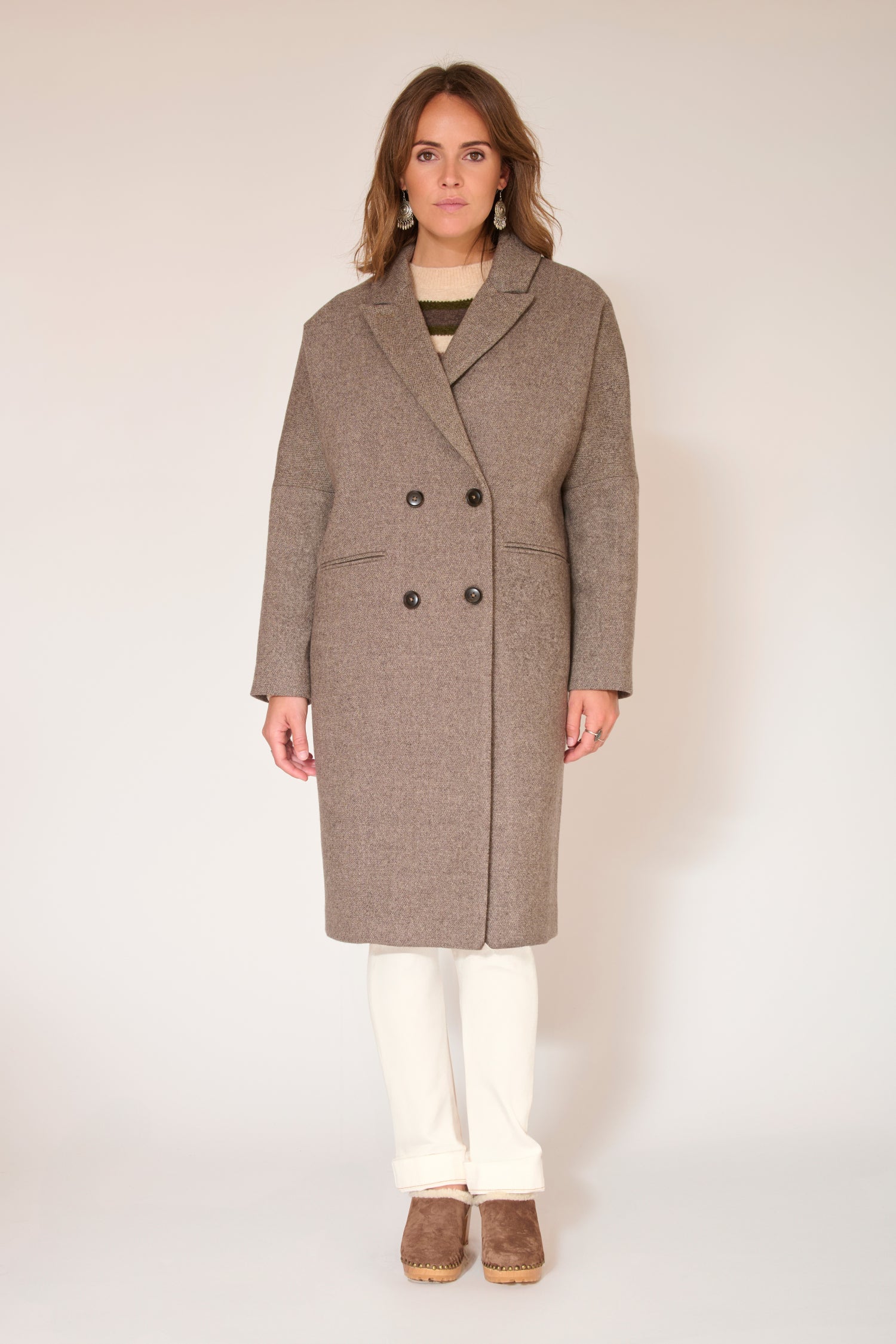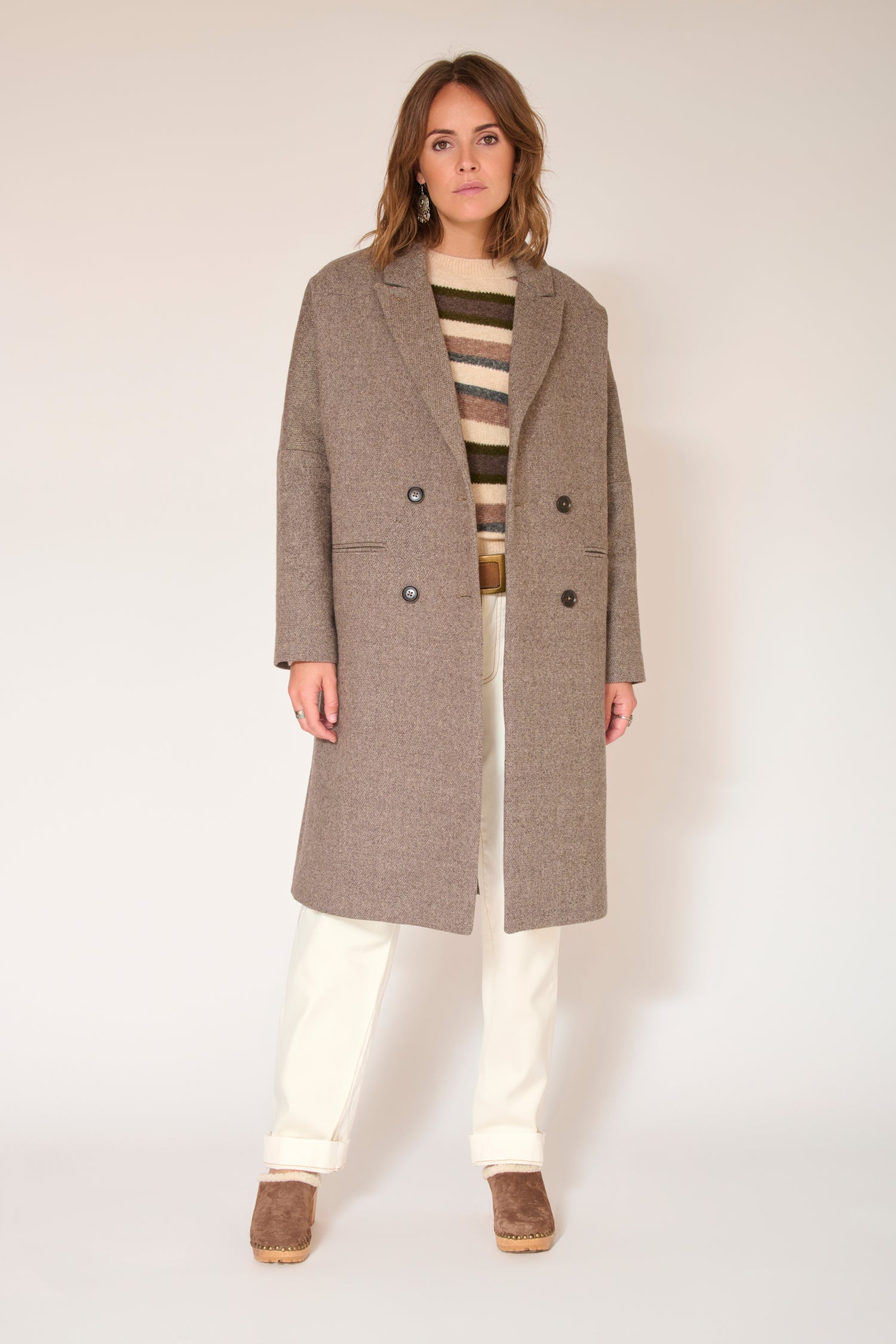 Le manteau MATCHA est le must have de la saison, c'est une pièce forte en lainage doux et confortable qui maintient la chaleur. La coupe de ce manteau est ample avec des emmanchures tombantes.