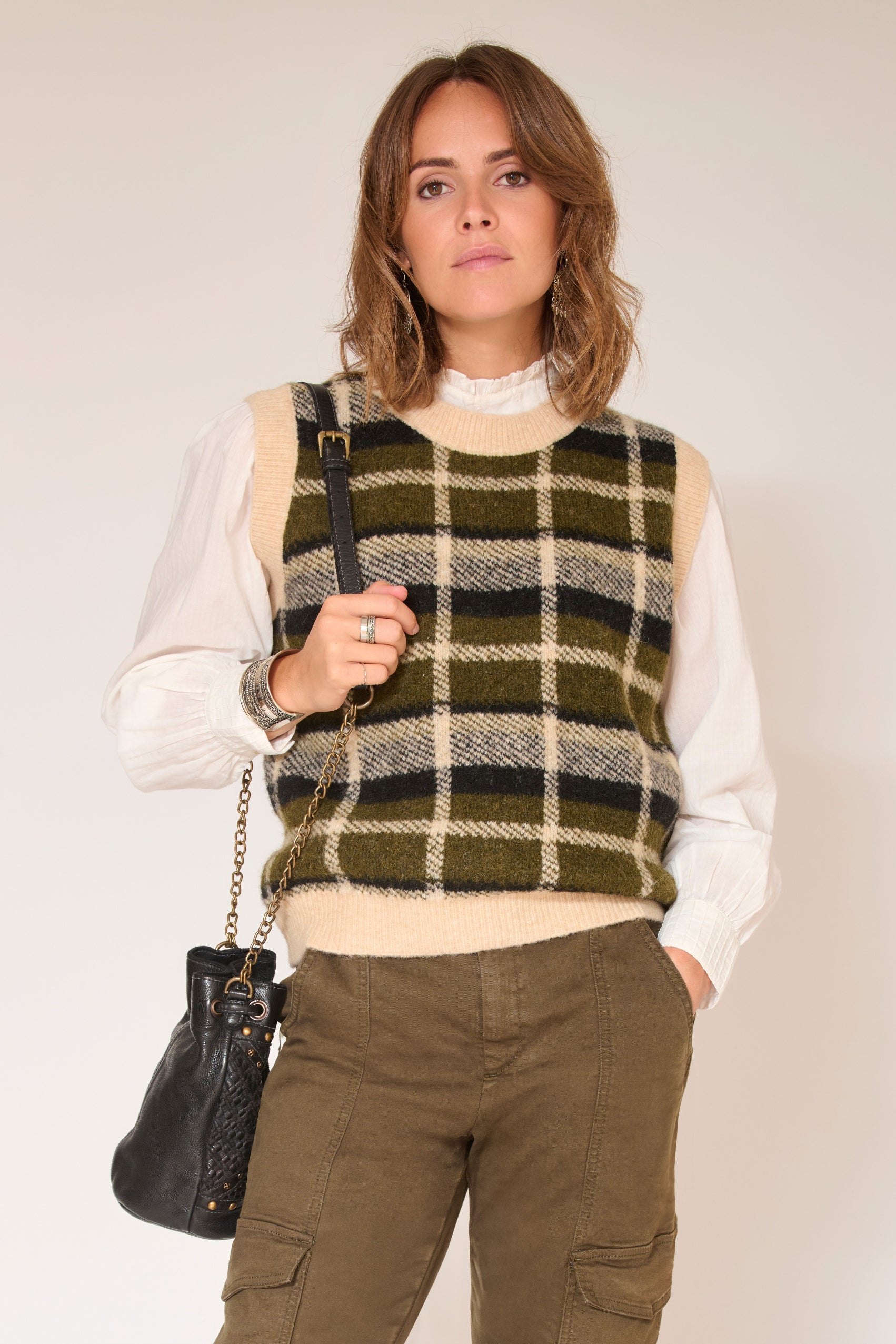 Pièce originale de notre nouvelle collection, notre pull col rond sans manches KATELL est le must-have de cet hiver. En maille douce, il s'associe parfaitement en superposition avec un chemisier ou un top léger.