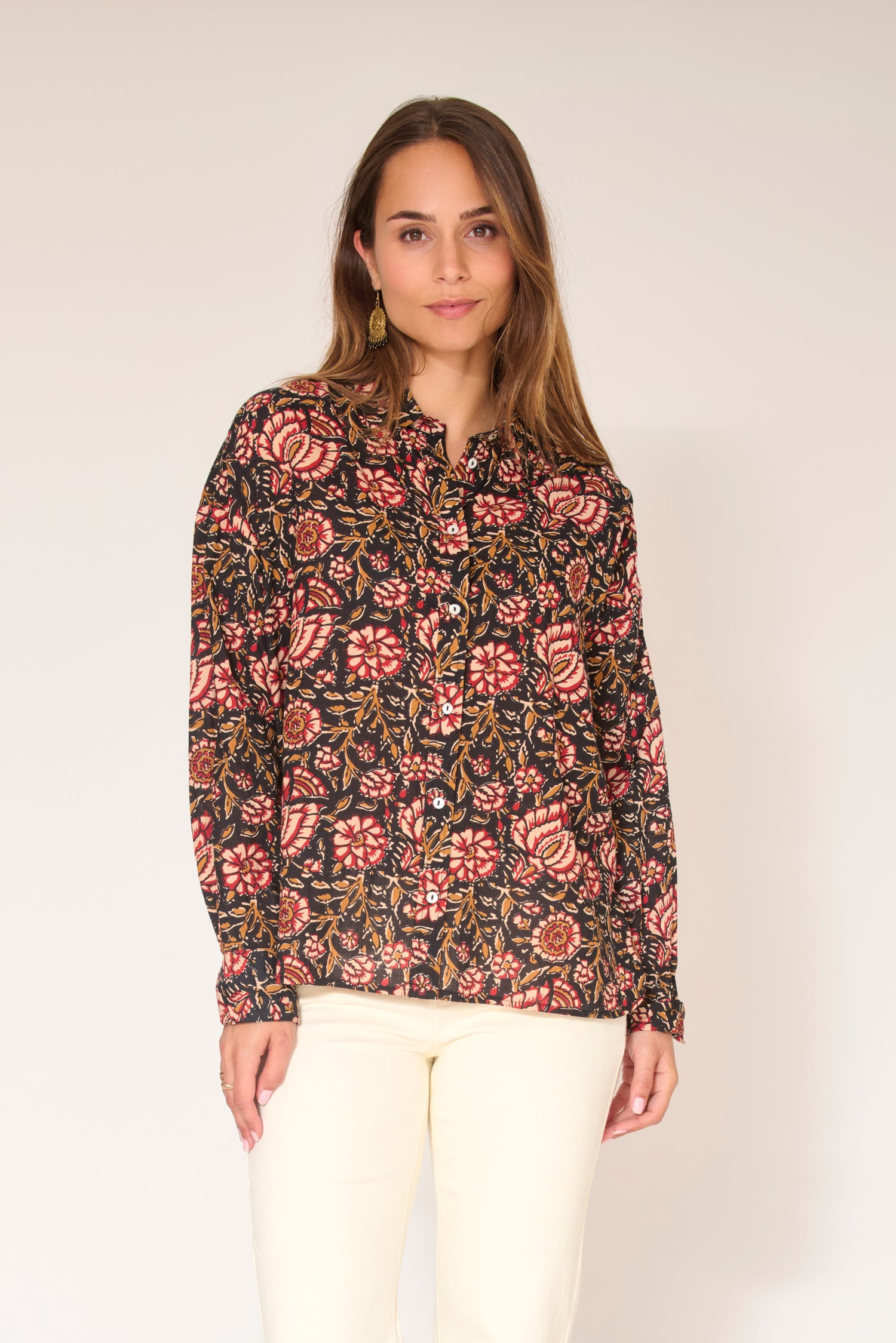 Pour affronter l'hiver avec élégance et style, notre chemise CADIZ à l'imprimé "mumbai" existe dans le coloris black. Composé de coton, son tombé est léger et fluide.