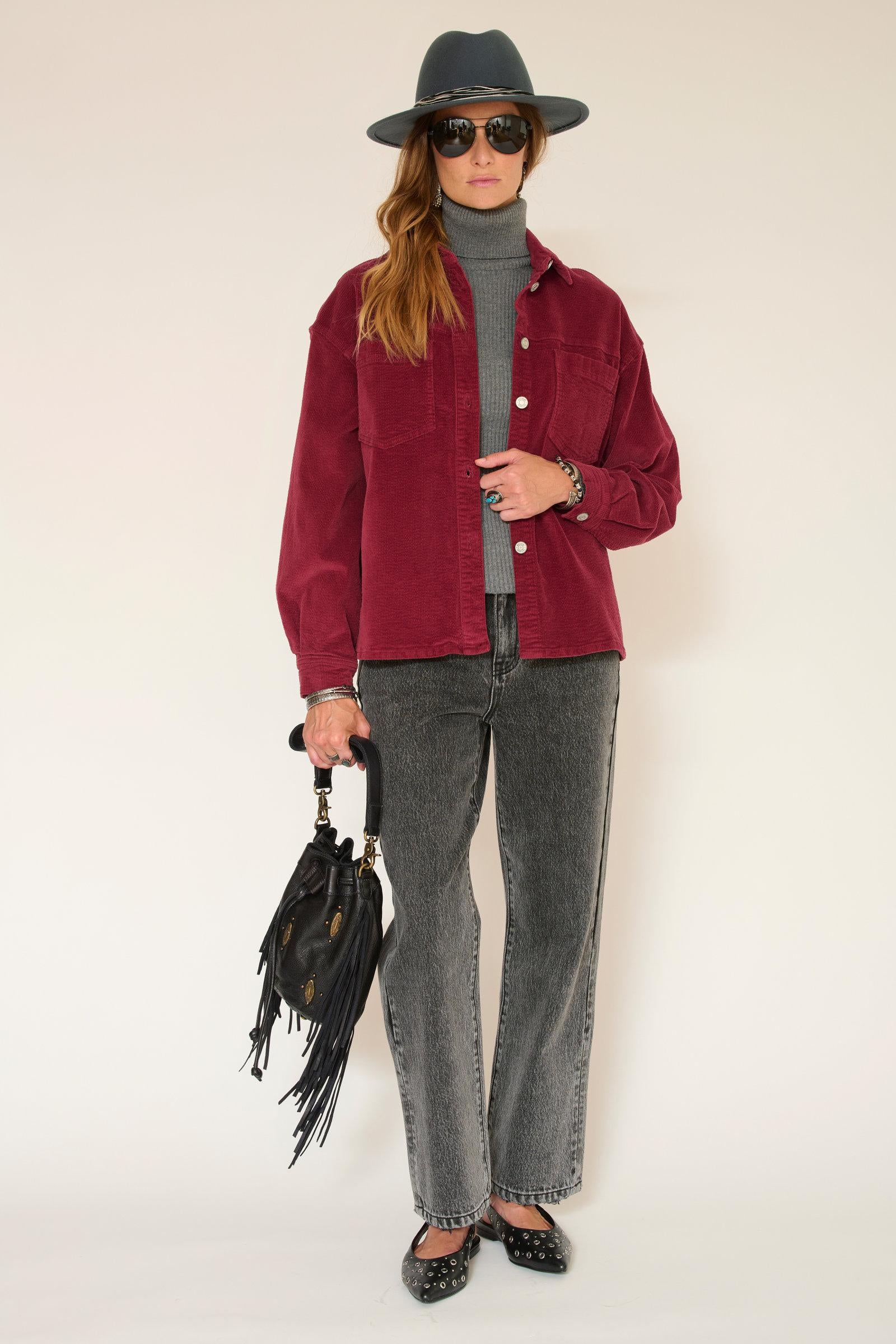 Sa teinte neutre permet une multitude d'associations, que ce soit porté seul ou sous une veste. Par exemple, il se marie parfaitement avec une veste rouge en velours côtelé, créant un contraste chic et moderne. Ce col roulé est parfait pour un look décontracté tout en restant raffiné.