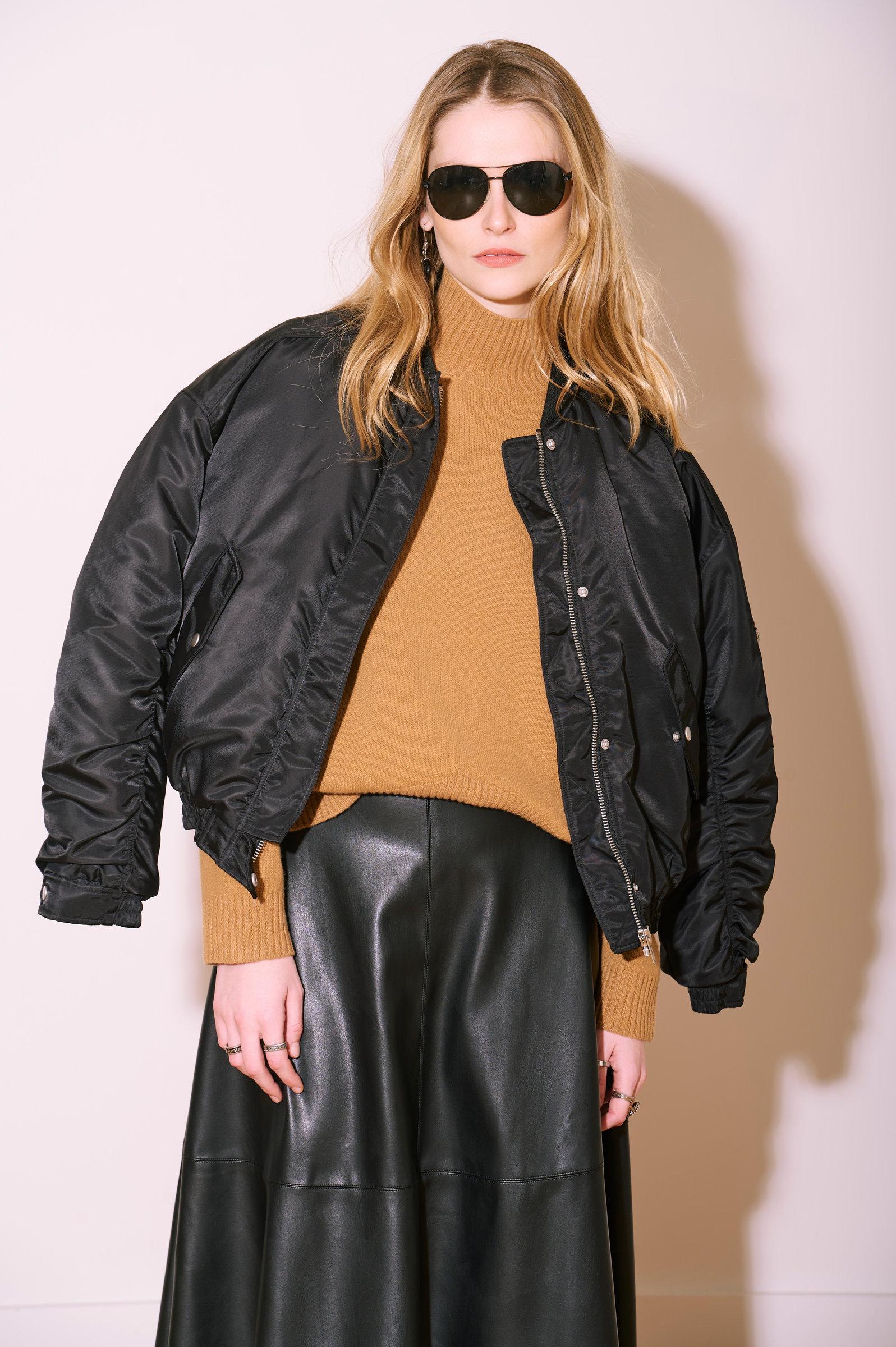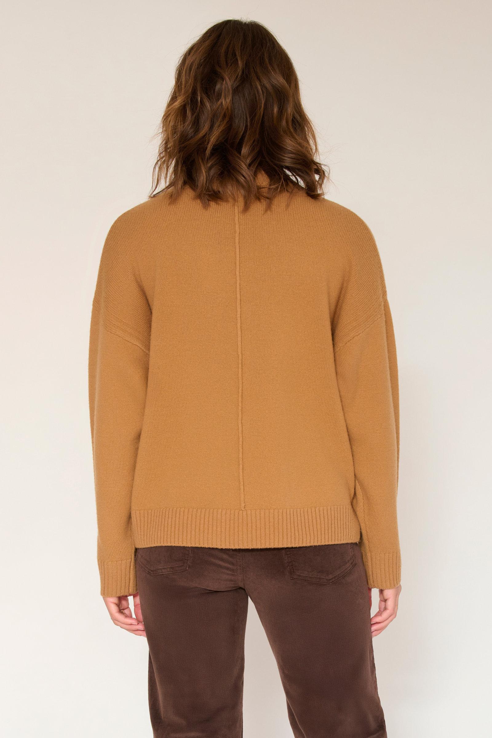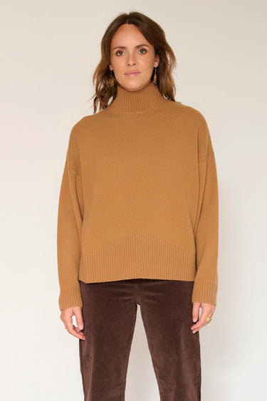 Le col roulé KODIE CAMEL est idéal pour créer des looks variés, que ce soit pour une sortie décontractée ou une occasion plus habillée. Il se marie parfaitement avec un pantalon en velours côtelé marron ou une veste bomber noire, illustrant ainsi sa capacité à s'intégrer dans différentes tenues.