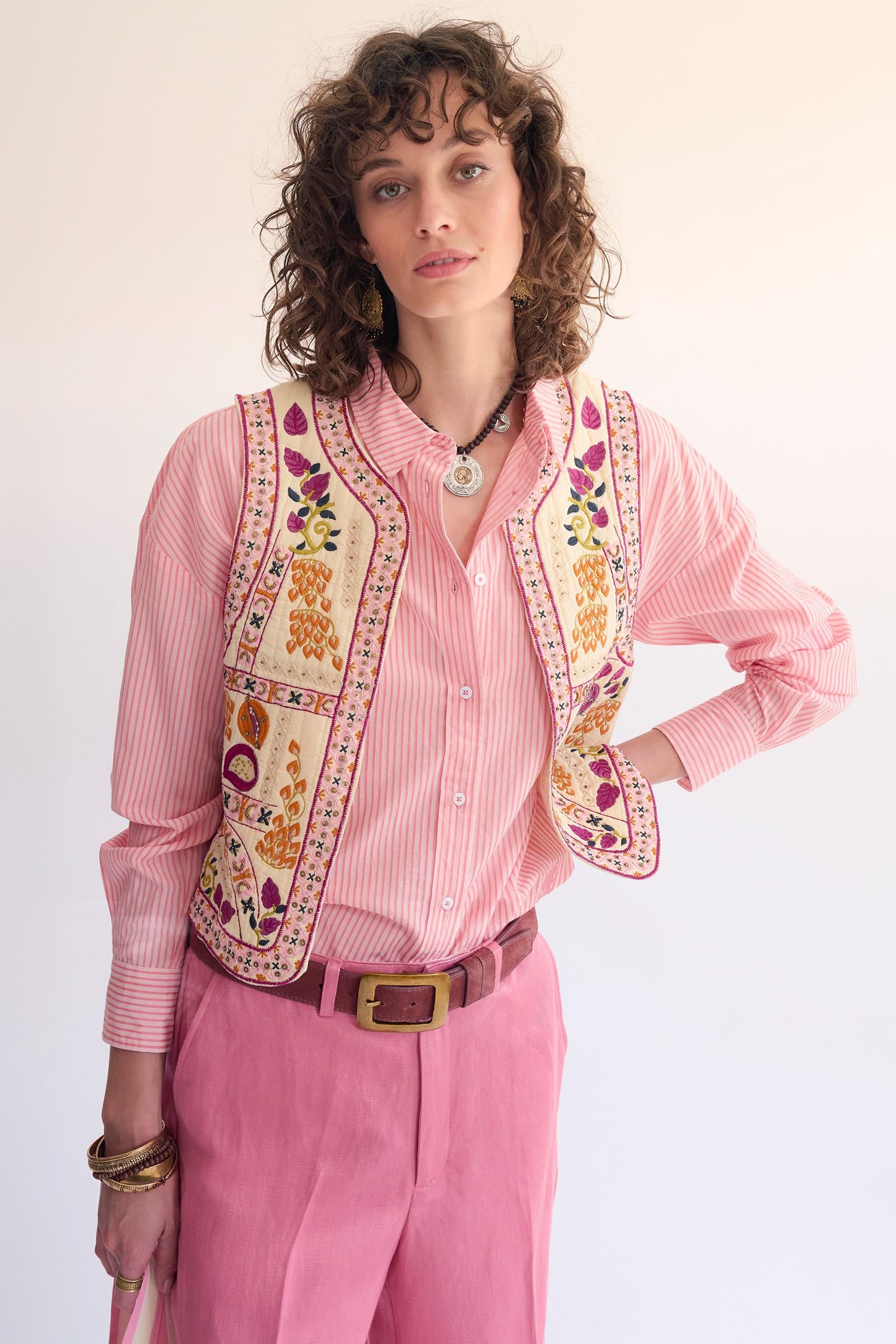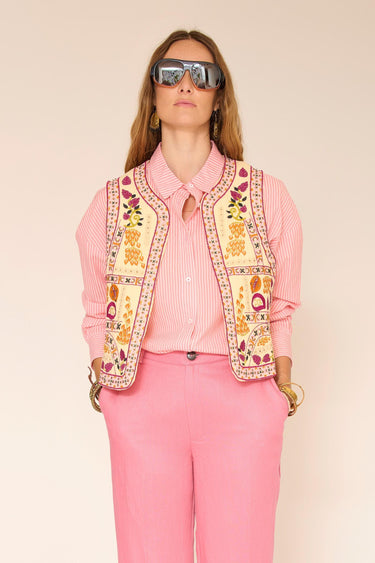 le mannequin mesure 175cm et porte une taille 38/M/28