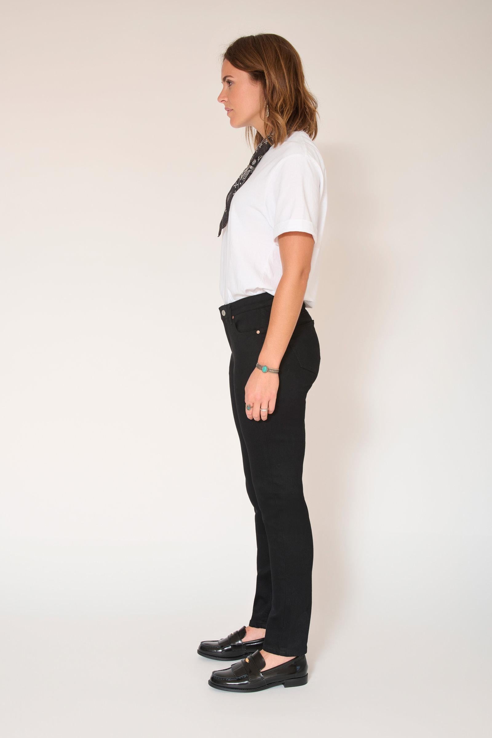 Made from stretch fabric , these jeans offer optimal comfort while maintaining a fitted silhouette. Their composition of 68% cotton, 18% polyester, 11% viscose and 3% elastane allows them to fit the body's shape while ensuring freedom of movement . The slim fit, fitted from the hips to the ankles, creates a slender line, while the high waist accentuates the silhouette and ensures good support.