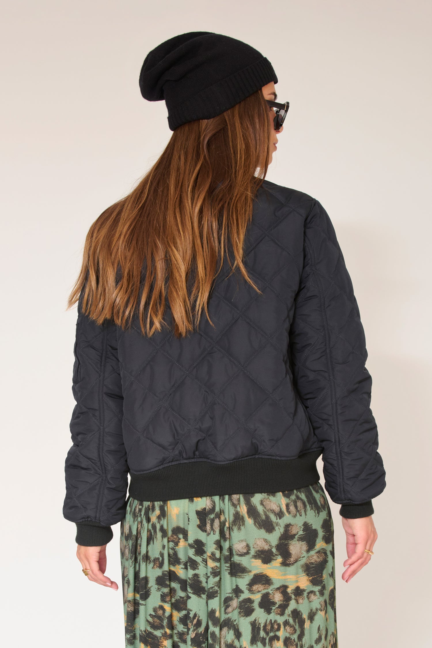 With its slightly oversized cut and geometric quilting, our VARIA bomber is a casual yet stylish piece. We love the geometric patterning that gives the jacket a lovely structure.