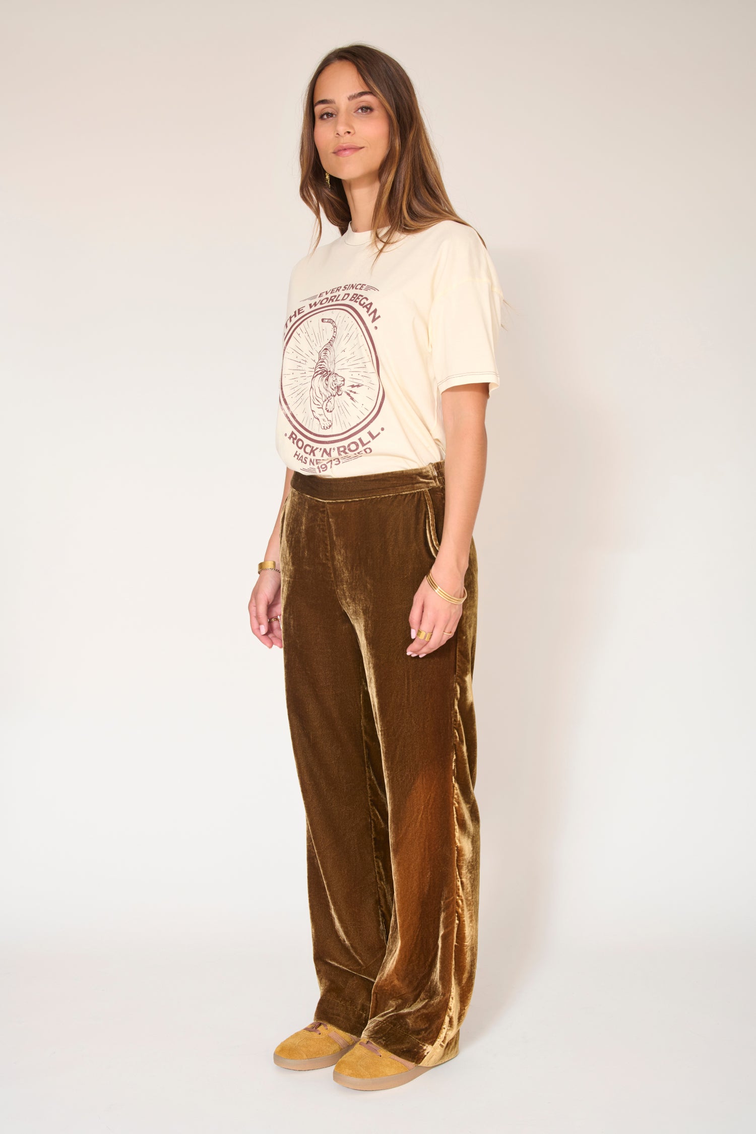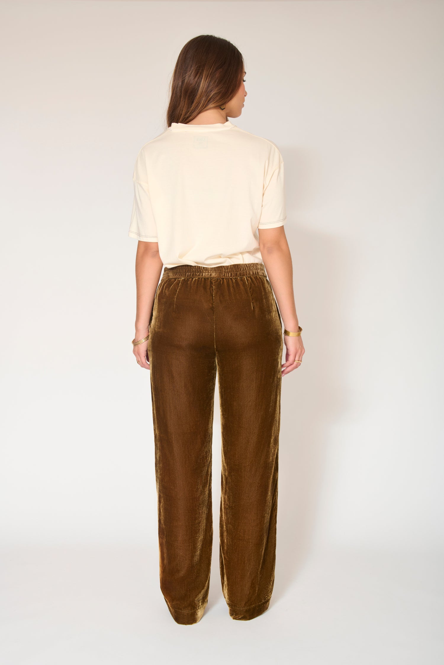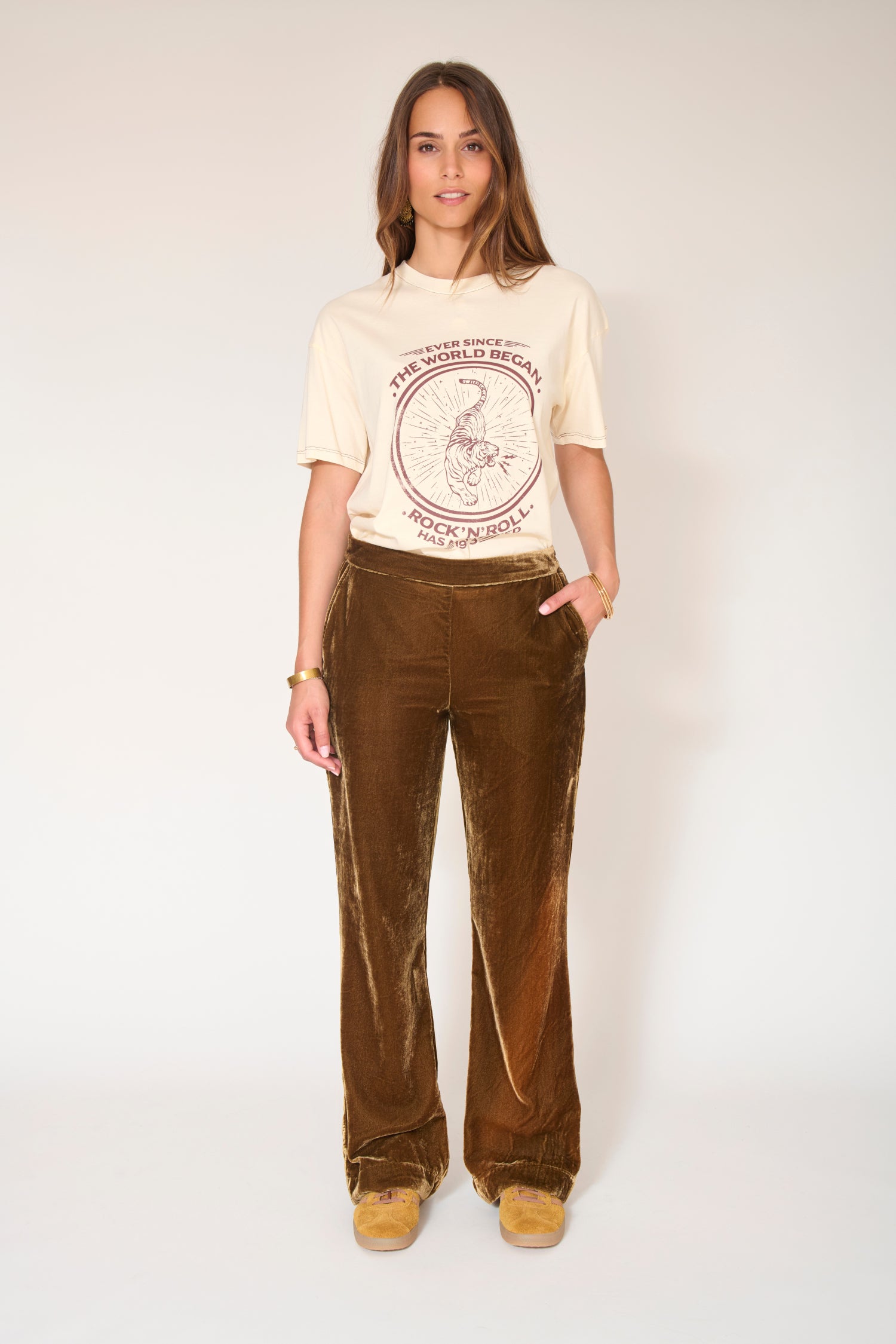 PARKY are velvet pants in a pretty bronze color, giving you a beautiful, slim silhouette. Pair them with the VALKY jacket for a touch of elegance, or mix and match to diversify your look possibilities.