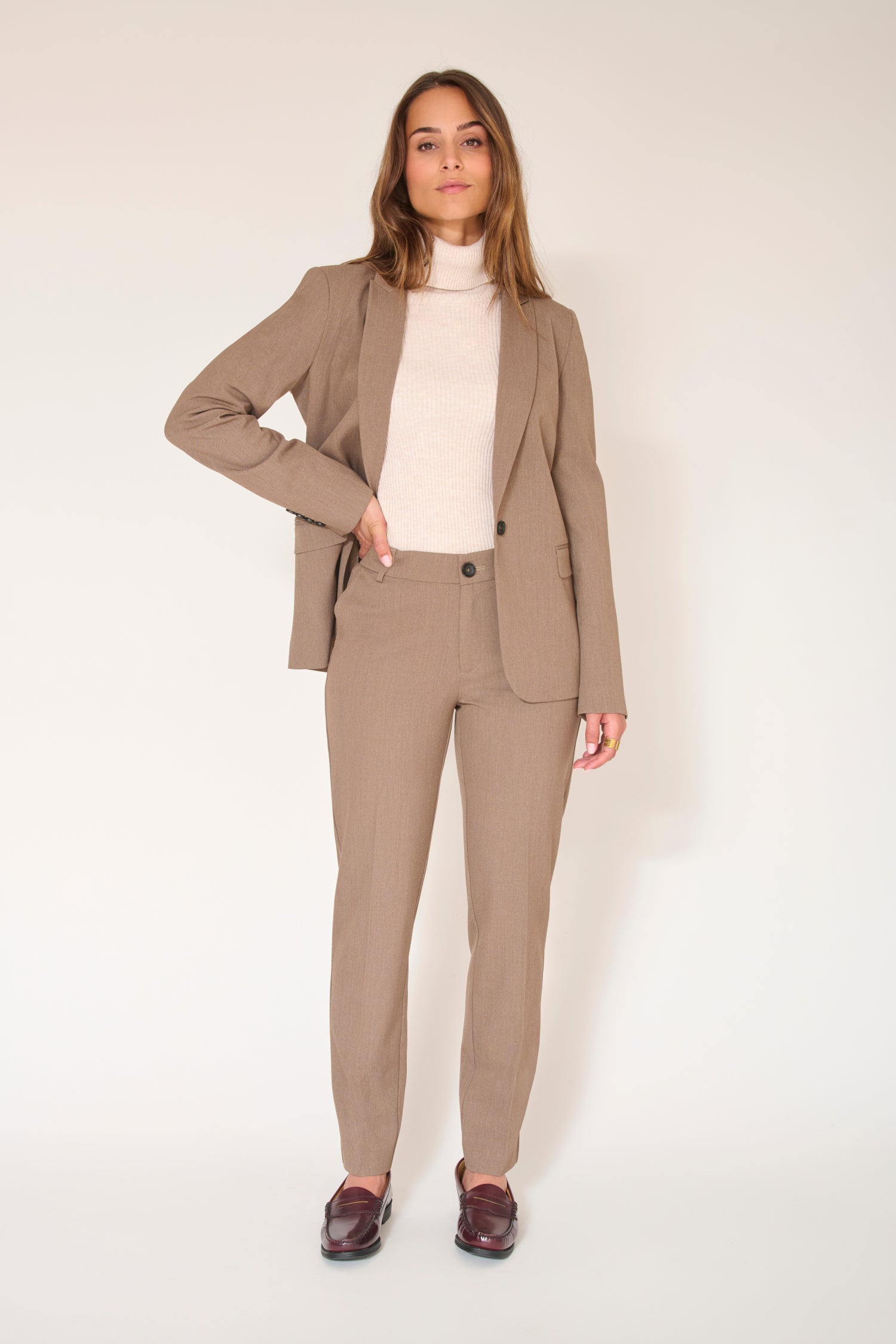 PATRIMONIO est le pantalon tailleur idéal. Il compose une silhouette structurée en un clin d'œil. Pour un look encore plus sophistiqué, portez-le avec notre blazer associé VELINE, une paire d'escarpins pour un look working girl ou une paire de basket pour une silhouette plus décontractée, et le tour est joué.