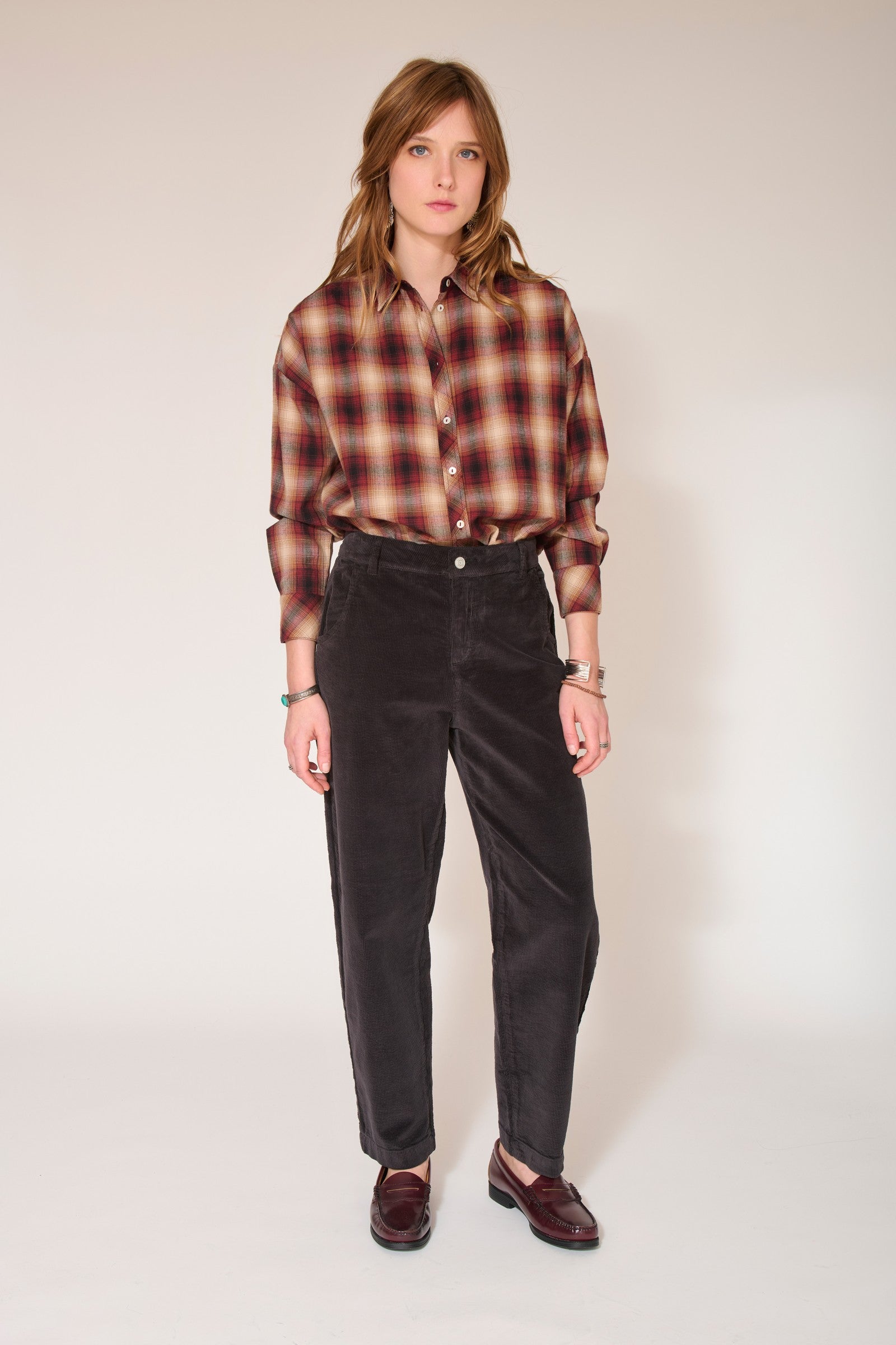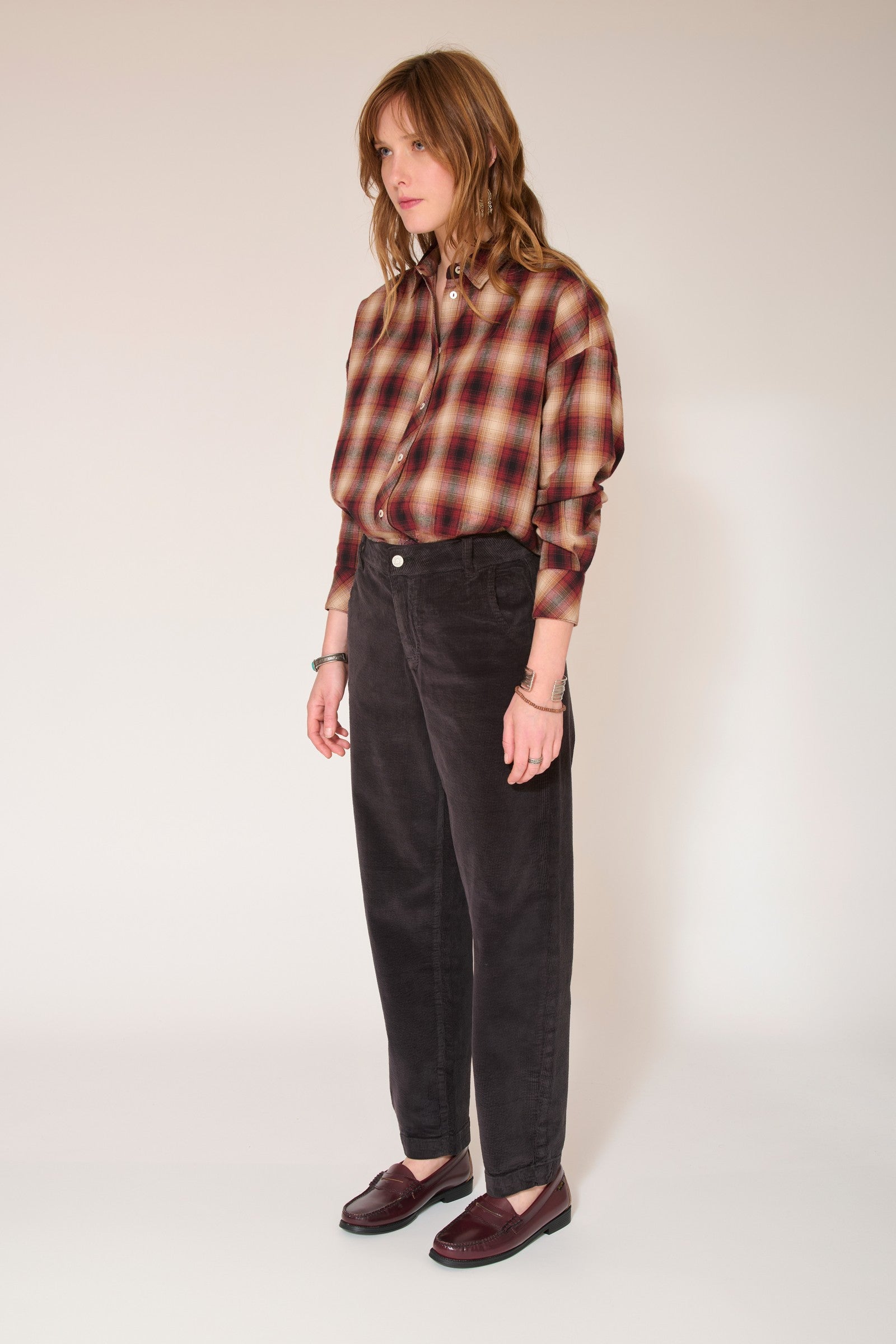 The PERRINE SOFT CORDUROY pants are a piece that will flatter your figure with their boyfit cut. They are comfortable to wear and the corduroy gives them a cozy and comfortable look.