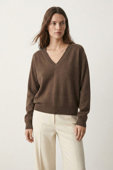 Le pull KALINA séduit par sa coupe légèrement ample, son col V intemporel et sa maille fine au toucher soyeux. Confectionné en 100% cachemire, il offre une chaleur délicate et un confort seconde peau. À porter à même la peau, glissé dans un jean ou en superposition sur une chemise, pour une silhouette à la fois simple, chic et moderne. Disponible dans plusieurs coloris. Un indispensable du vestiaire féminin, à garder longtemps.