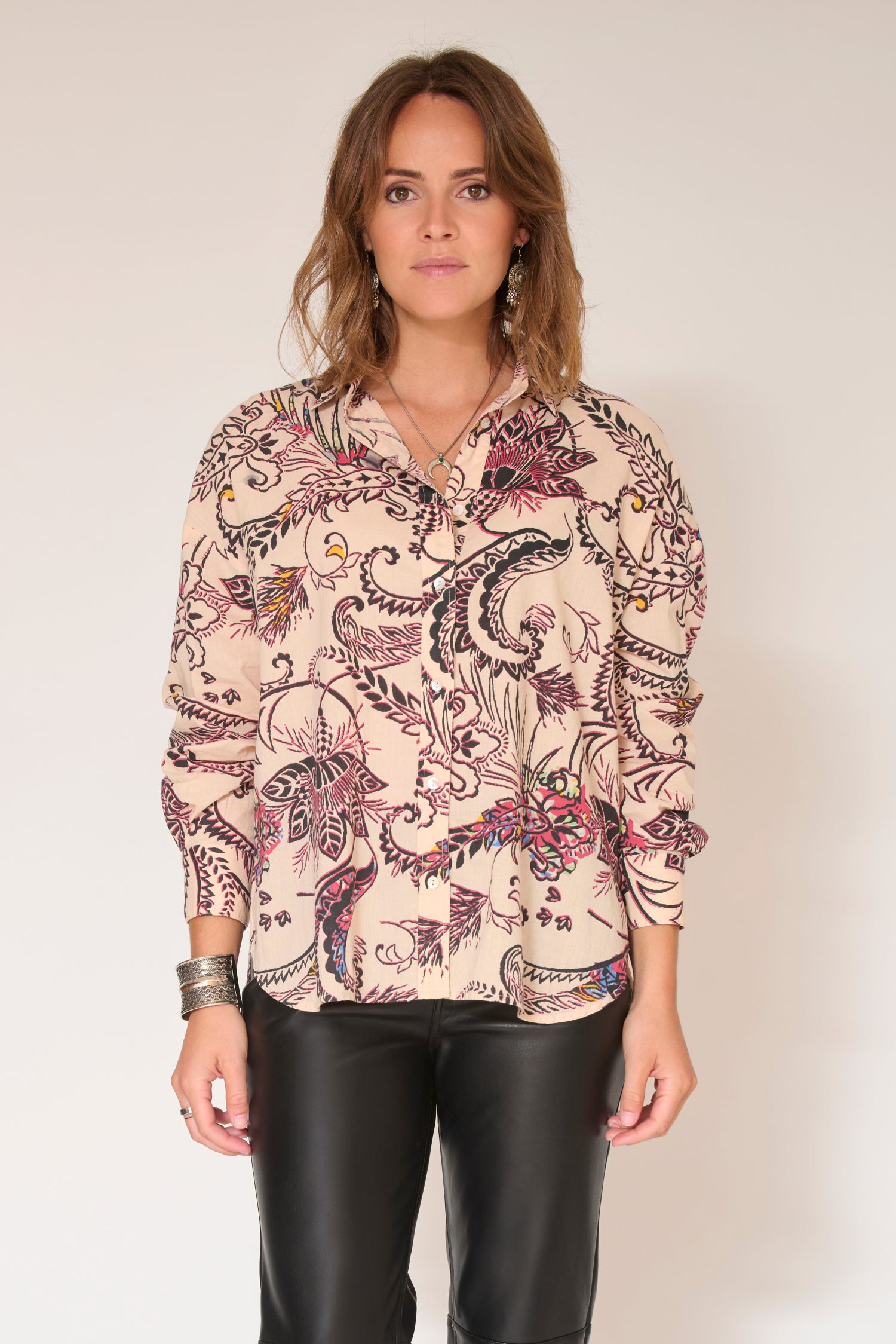 Our CEZA shirt is made from 100% cotton and is lightweight, with worked floral motifs. Our goa print colors are a perfect match for your new-season looks.