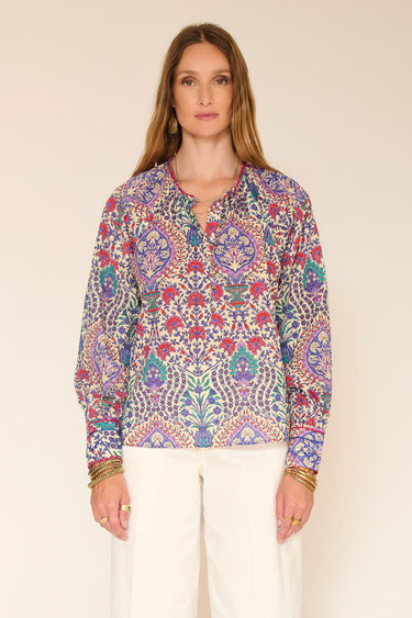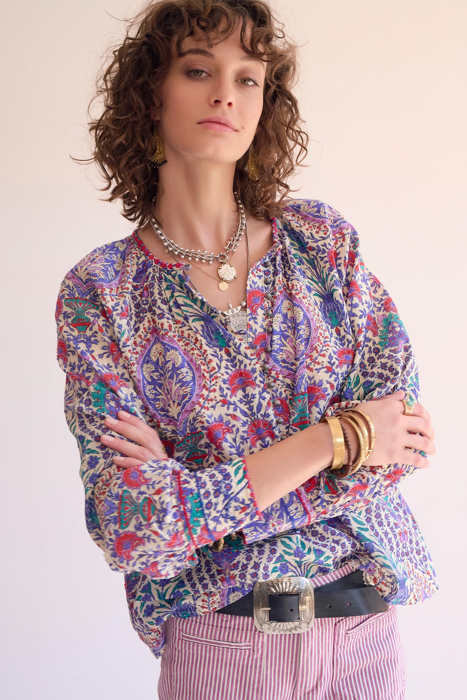 Un imprimé riche et vibrant qui capte immédiatement le regard. La coupe fluide équilibre la silhouette et laisse toute la place au motif, pour une allure bohème chic portée avec naturel. Facile à associer à un pantalon clair ou un denim, elle apporte instantanément du style, sans en faire trop.