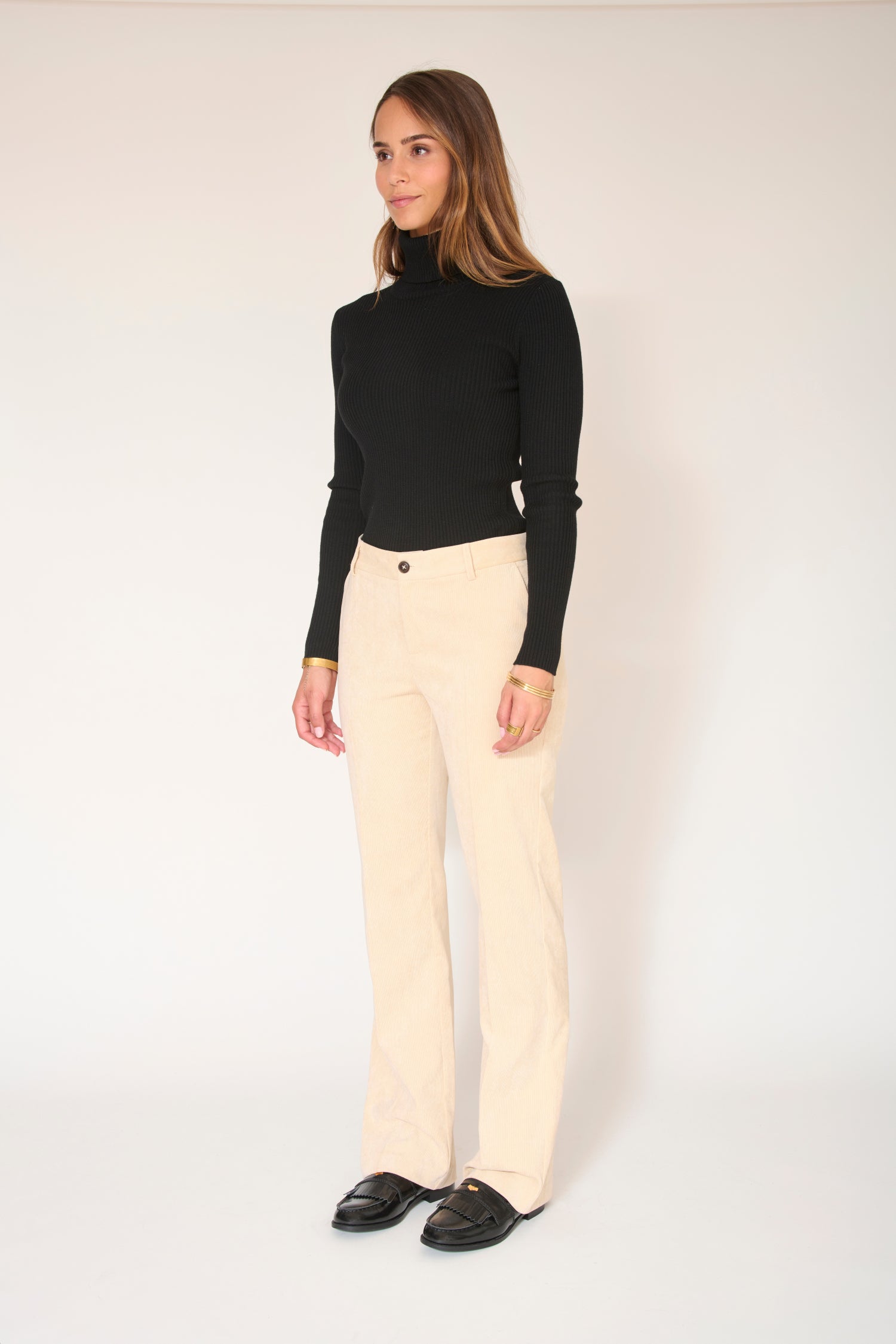 PINDER are flared pants that will enhance your silhouette. Wear them with the matching VERNEY jacket and a printed blouse for an elegant look.