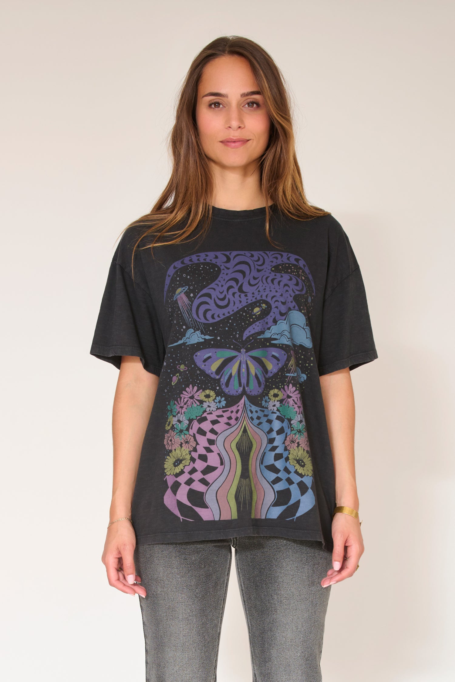 Adorned with a psychedelic print, this loose-fit cotton t-shirt features a round neck and short sleeves. Perfect for energizing any look.