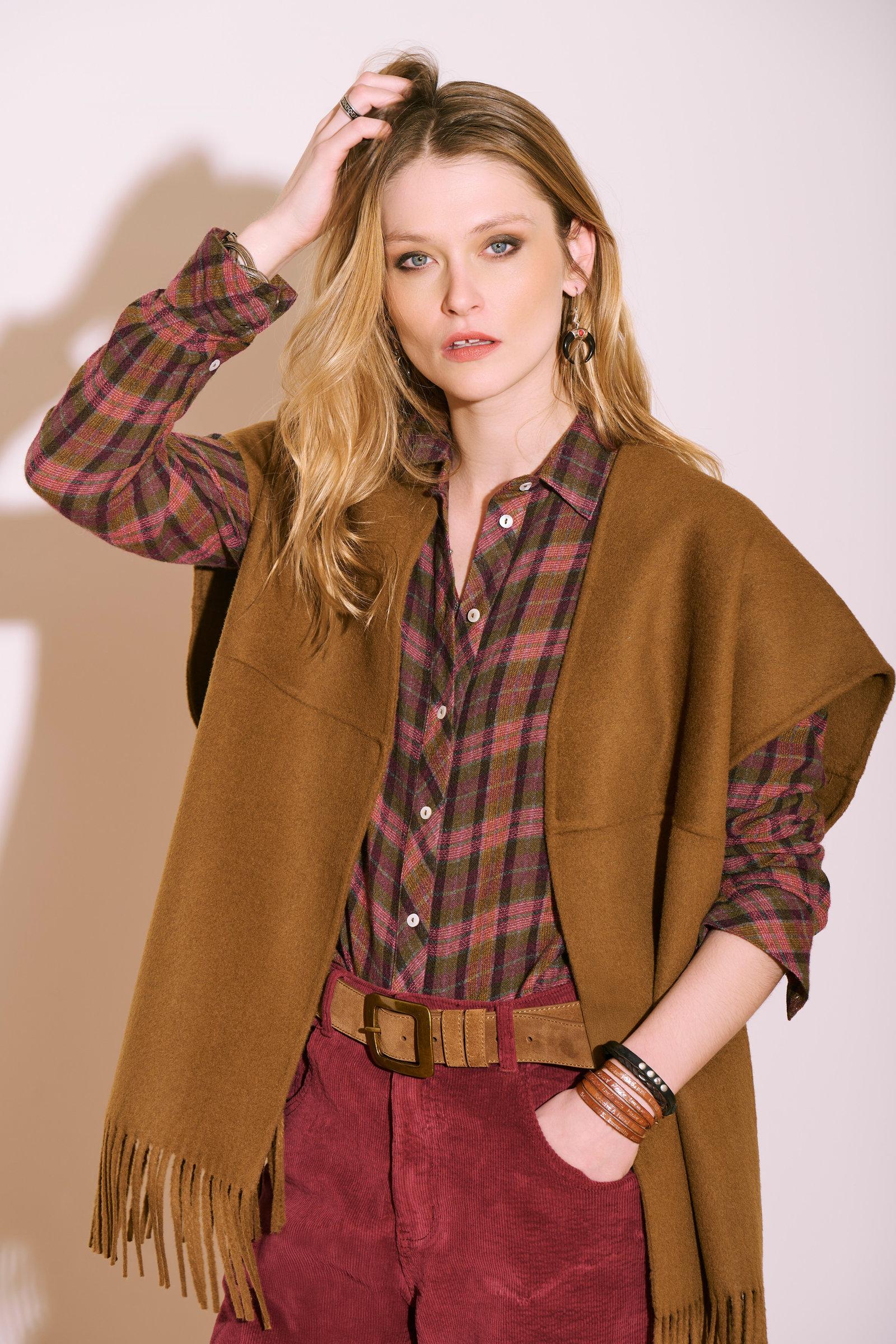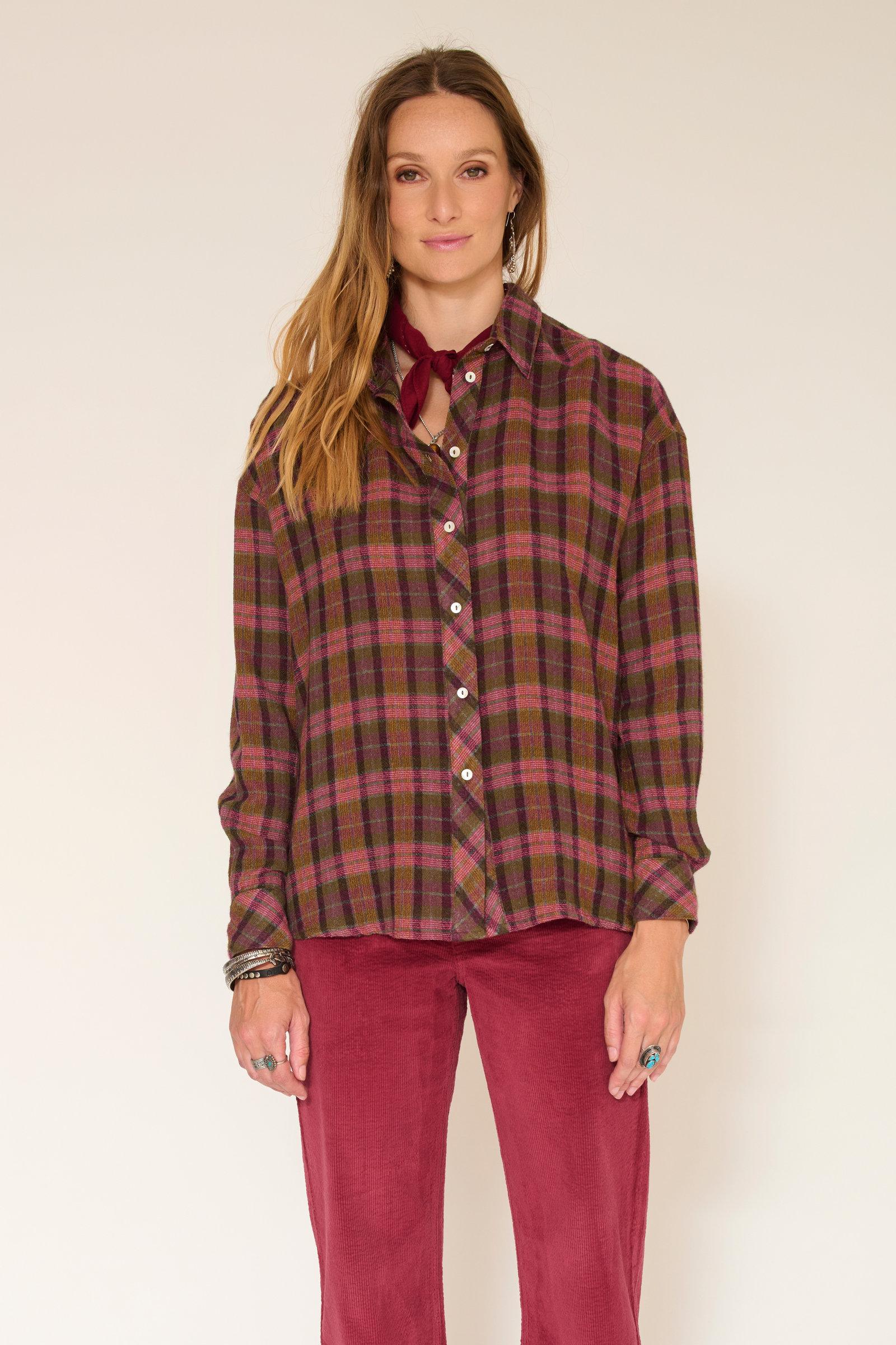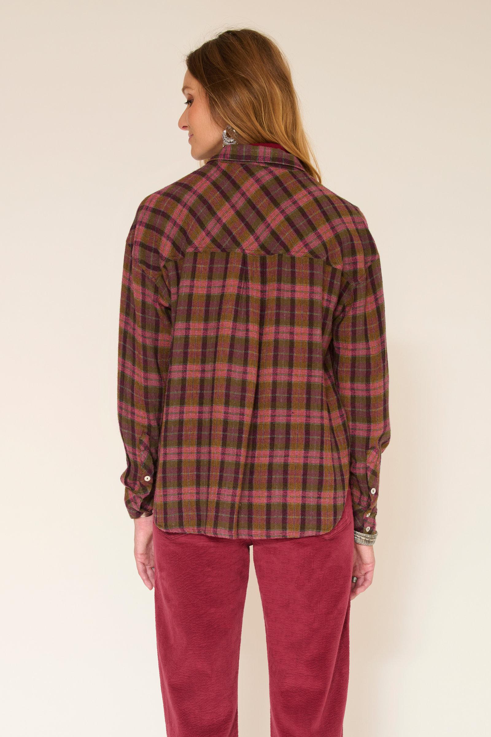 La camisa CALIBA CHECKS es una prenda imprescindible en cualquier armario moderno, ya que combina comodidad y estilo casual. Con su estampado de cuadros en cálidos tonos burdeos, verde y morado, le da un toque otoñal a tu look.