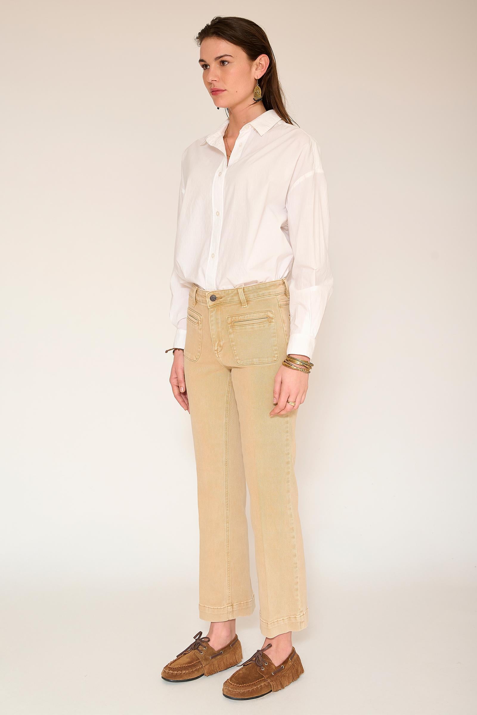 Con su corte atrevido y estilo retro, The Bonnie Pacific Drill reinventa los jeans con una silueta estructurada y decididamente femenina. La cintura alta estiliza la figura, mientras que la pernera recta ligeramente acampanada alarga la silueta para un look vintage y moderno a la vez. Confeccionado en denim de algodón orgánico, ofrece una caída preciosa y una sensación auténtica, fiel al espíritu de los jeans icónicos. Los bolsillos de parche en la parte delantera le aportan carácter y un toque chic y práctico. Estos jeans tienen personalidad, son fáciles de combinar y aportan estructura a cualquier look sin ser recargados.