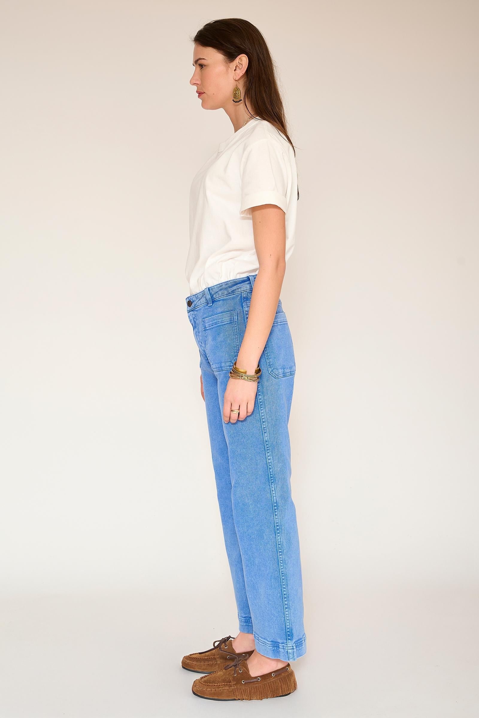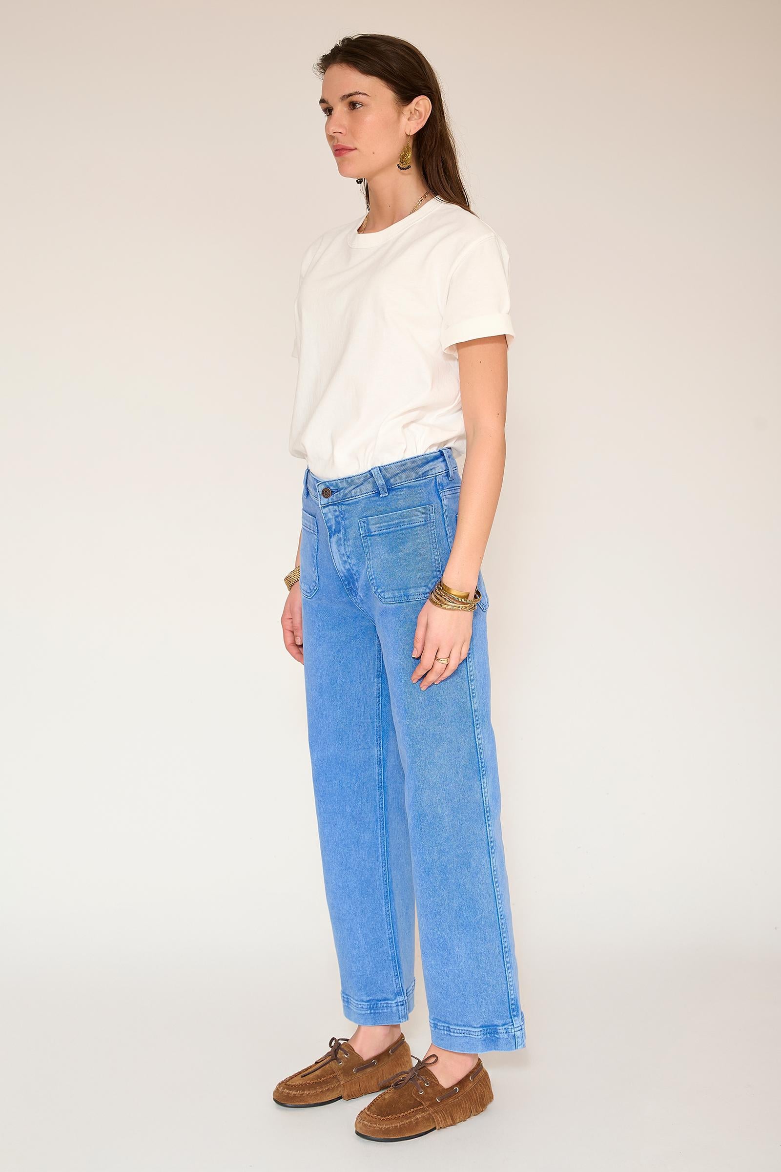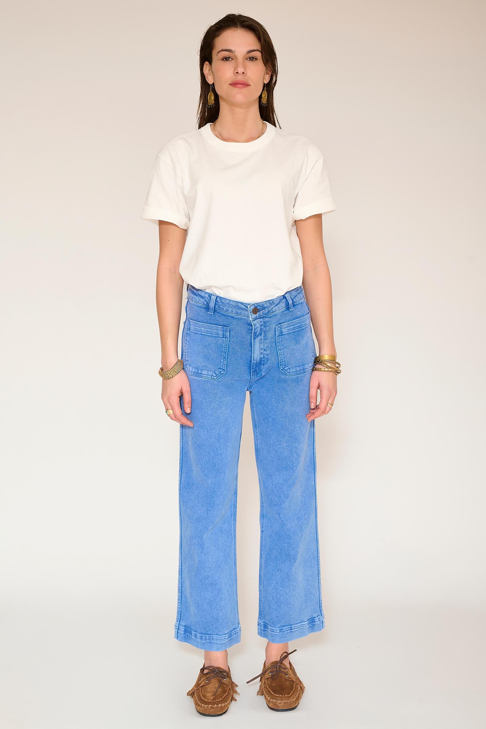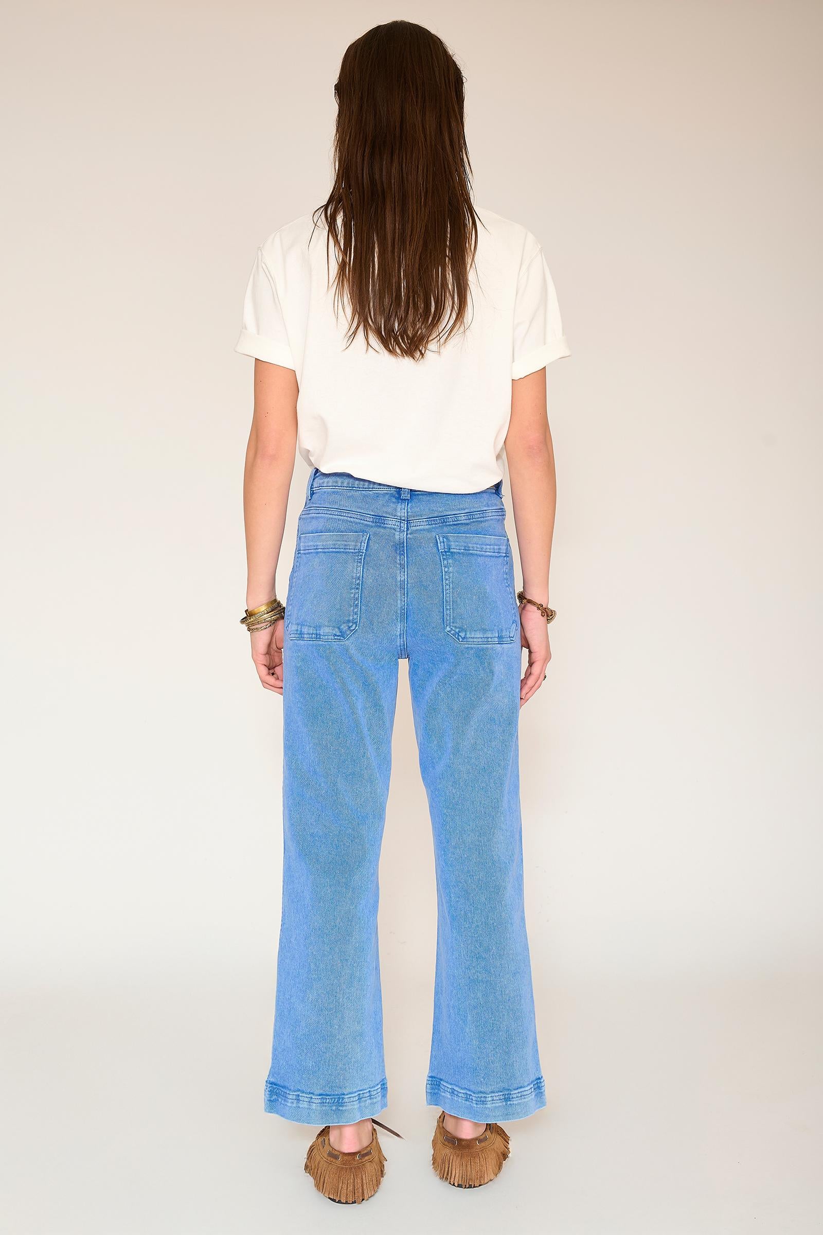 Con su corte atrevido y aire retro, el Frida Pacific Drill retoma el espíritu setentero con un corte acampanado estructurado y una cintura bien definida. Ajustado en la cadera y con un ensanchamiento posterior desde el muslo, alarga la silueta y aporta gran presencia al look. Confeccionado en dril de tacto suave y caída impecable, combina a la perfección con una camiseta informal o una blusa elegante, para un look moderno y vintage a la vez.