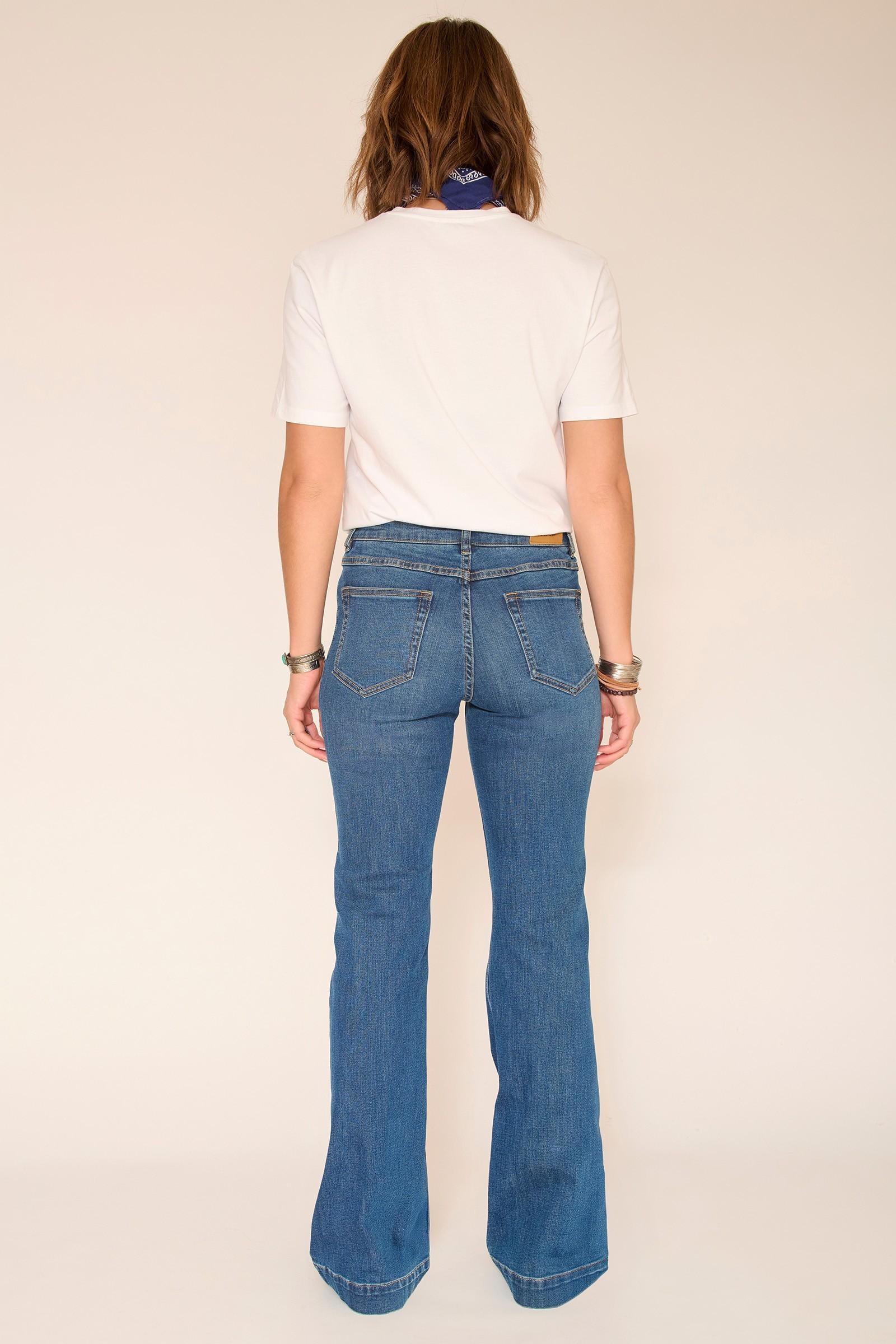 Corte icónico y espíritu vintage: Los jeans Diana Wilson crean una silueta elegante y femenina gracias a su corte acampanado perfectamente equilibrado. Ajustados en la cadera y con un ligero vuelo en la pierna, estilizan la figura sin restringir el movimiento. El denim de aspecto auténtico aporta carácter y un toque retro distintivo, ideal para el día a día con una camiseta sencilla o una blusa más elegante.