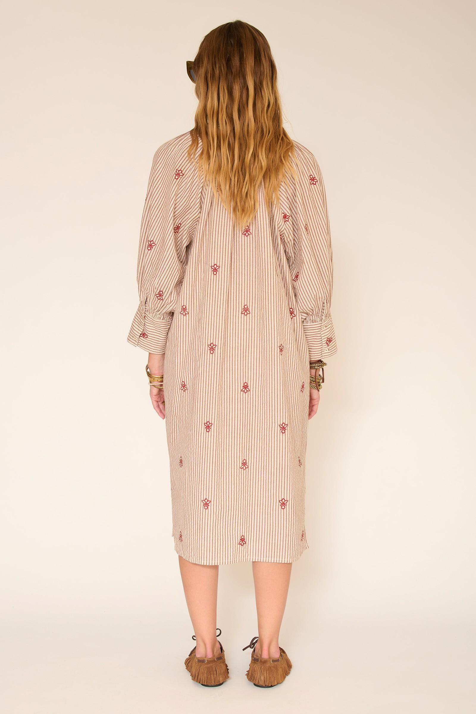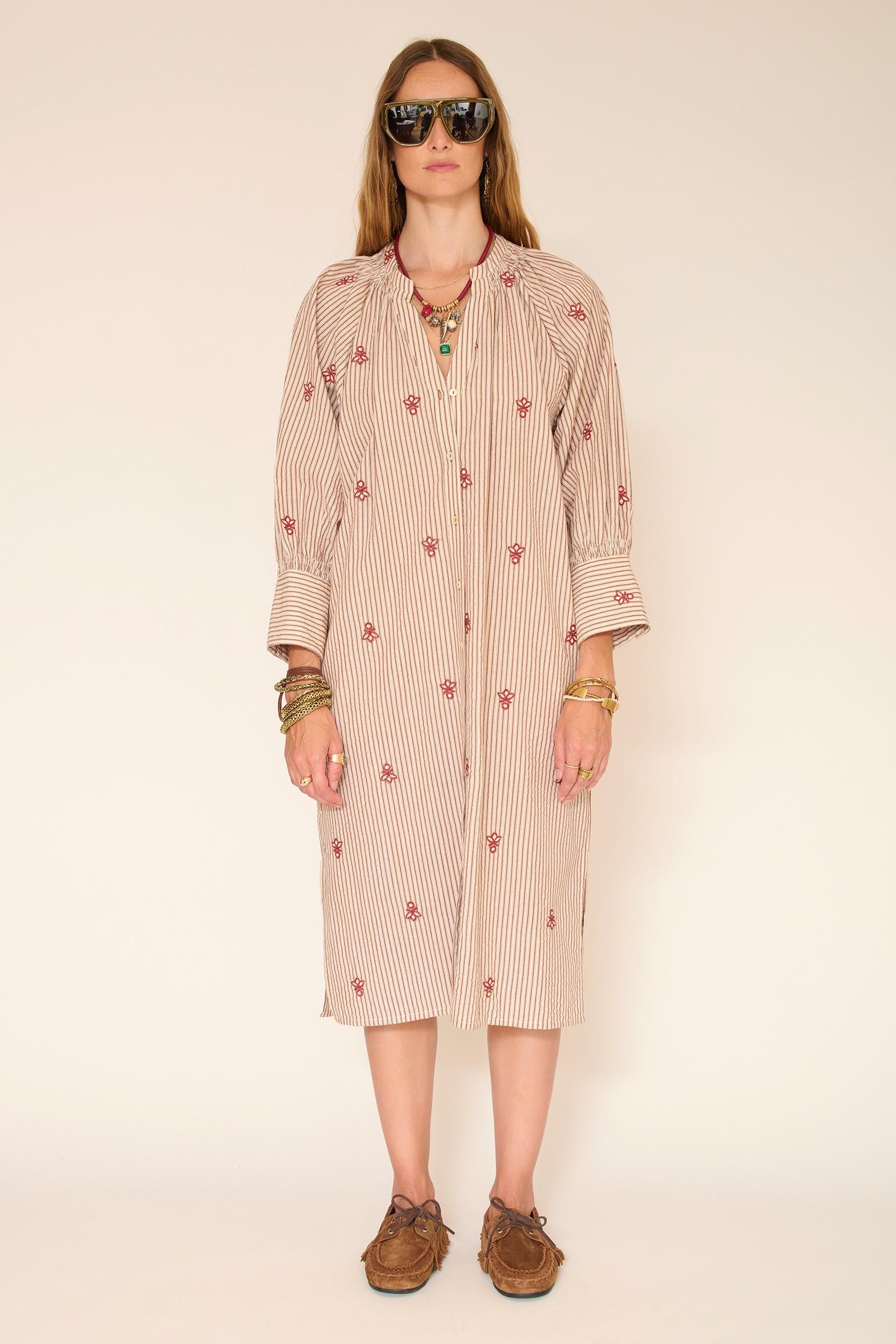 El vestido que puedes ponerte sin pensarlo dos veces (y que no te quitas). Su corte recto súper moderno, su silueta fluida y sus sutiles detalles bordados marcan la diferencia. La tela ligera tiene una caída preciosa y las mangas tres cuartos le dan la estructura perfecta. Llévalo suelto con sandalias o con cinturón para un toque diferente. Sencillo, efectivo y sin esfuerzo.