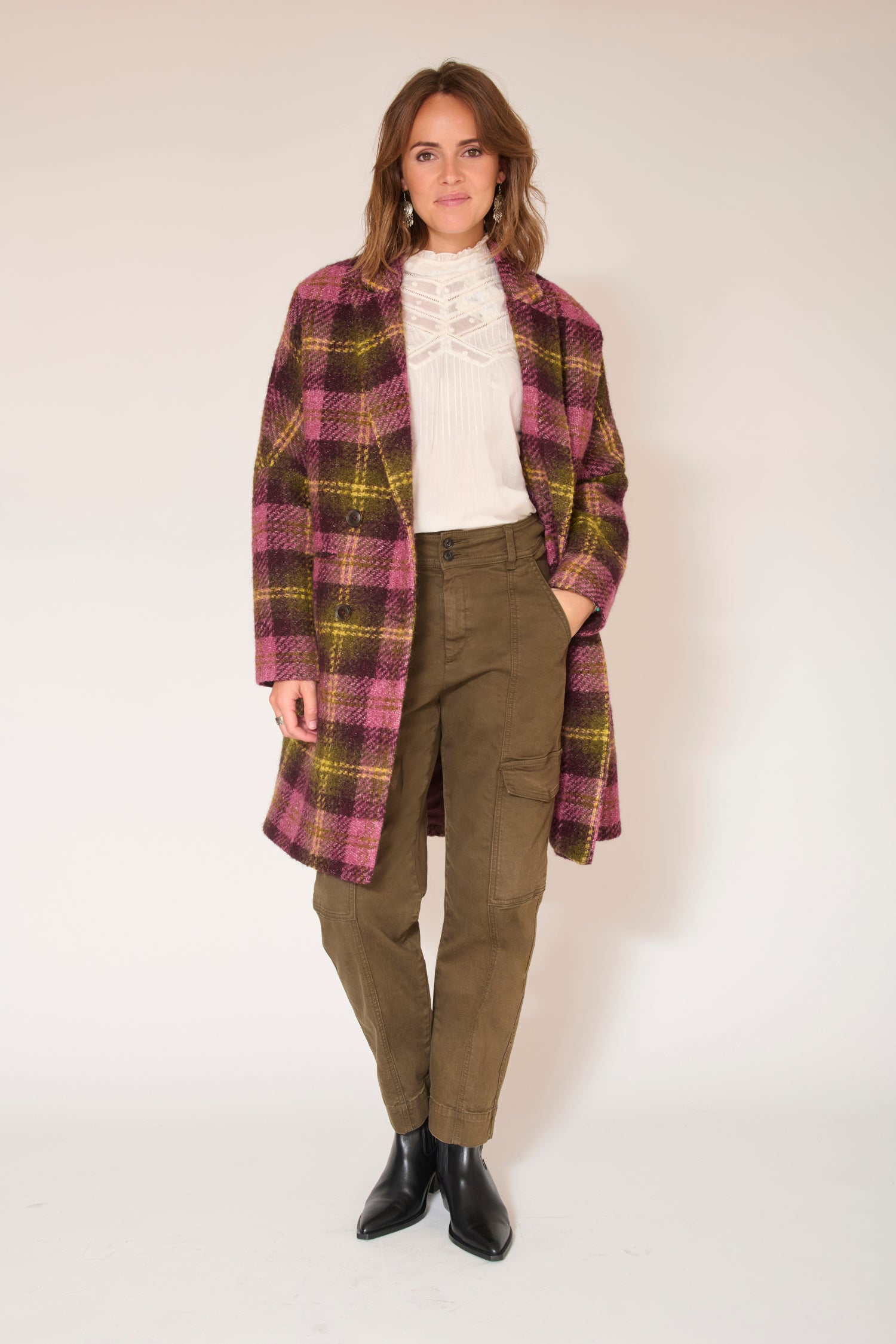 ¡Nuestro abrigo MELVA es imprescindible para la temporada! Estos estampados de cuadros multicolores aportan un toque de originalidad. Está confeccionado con lana suave y cómoda y añadirá estilo a tus conjuntos de invierno.