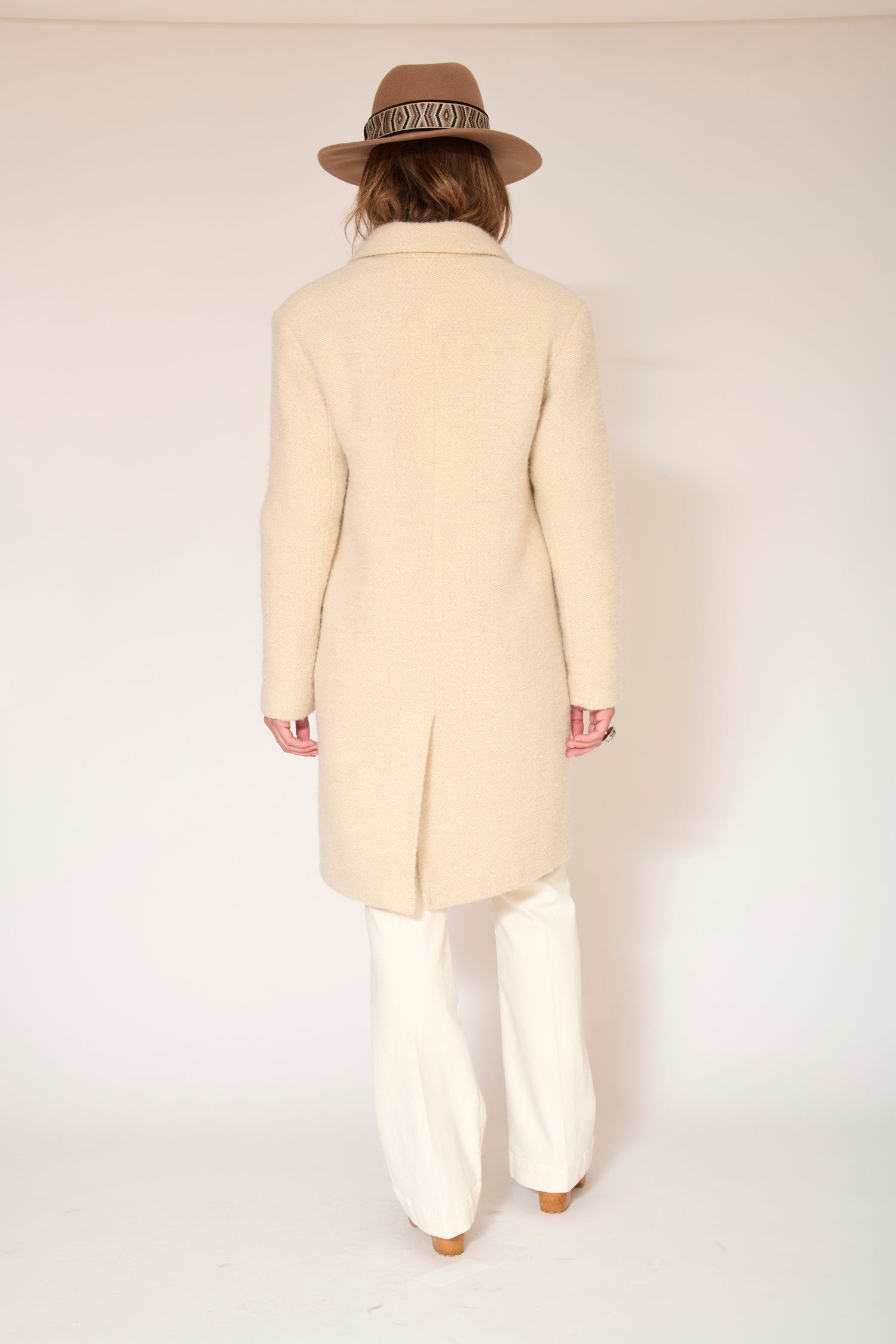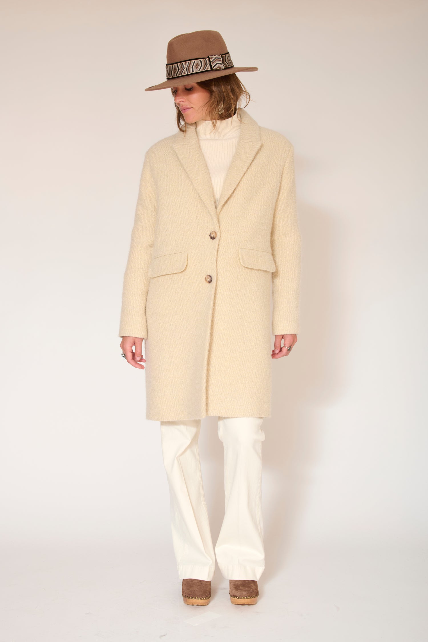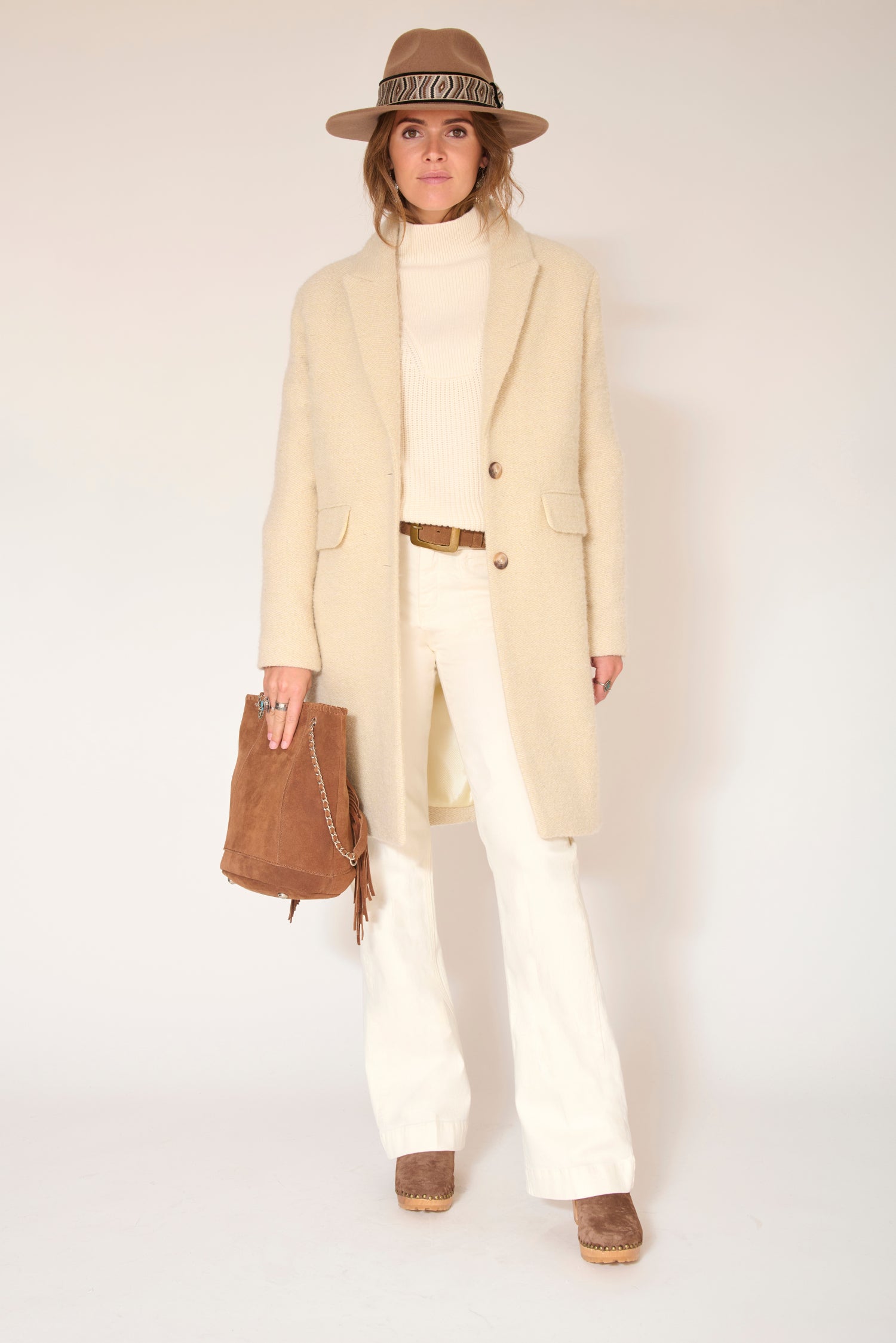 Para un look chic y trendy, opta por nuestro abrigo MICKY en un bonito tono natural, este abrigo es suave y cómodo con un corte elegante para llevar con pantalones y zapatillas para un fin de semana en la montaña o con un vestido y tacones para una cena romántica. .