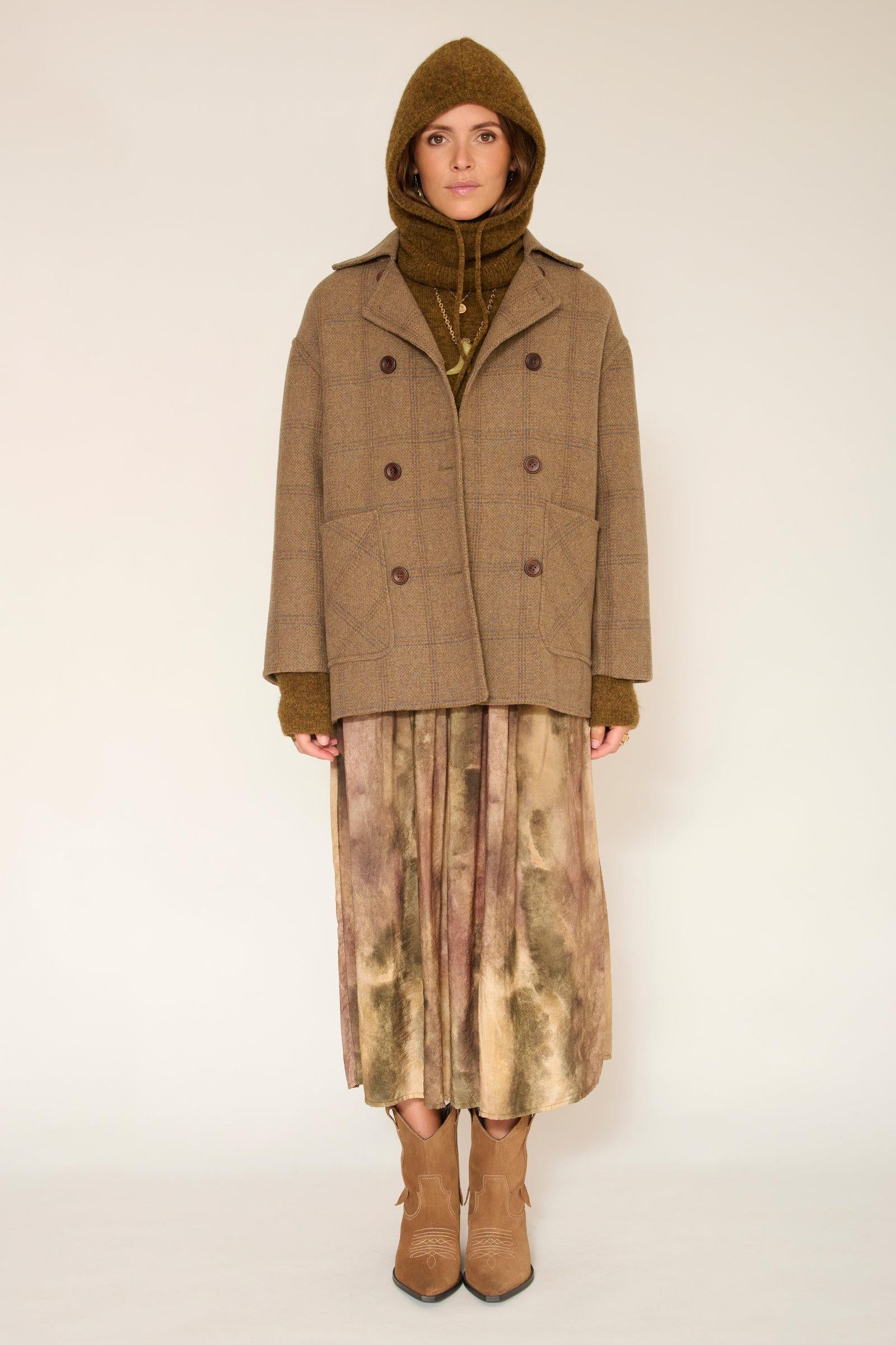 El abrigo MISSY NUTS destaca por su elegancia atemporal y su comodidad inigualable. Su color avellana y su estampado liso lo convierten en una prenda versátil, ideal para las estaciones más frías.
