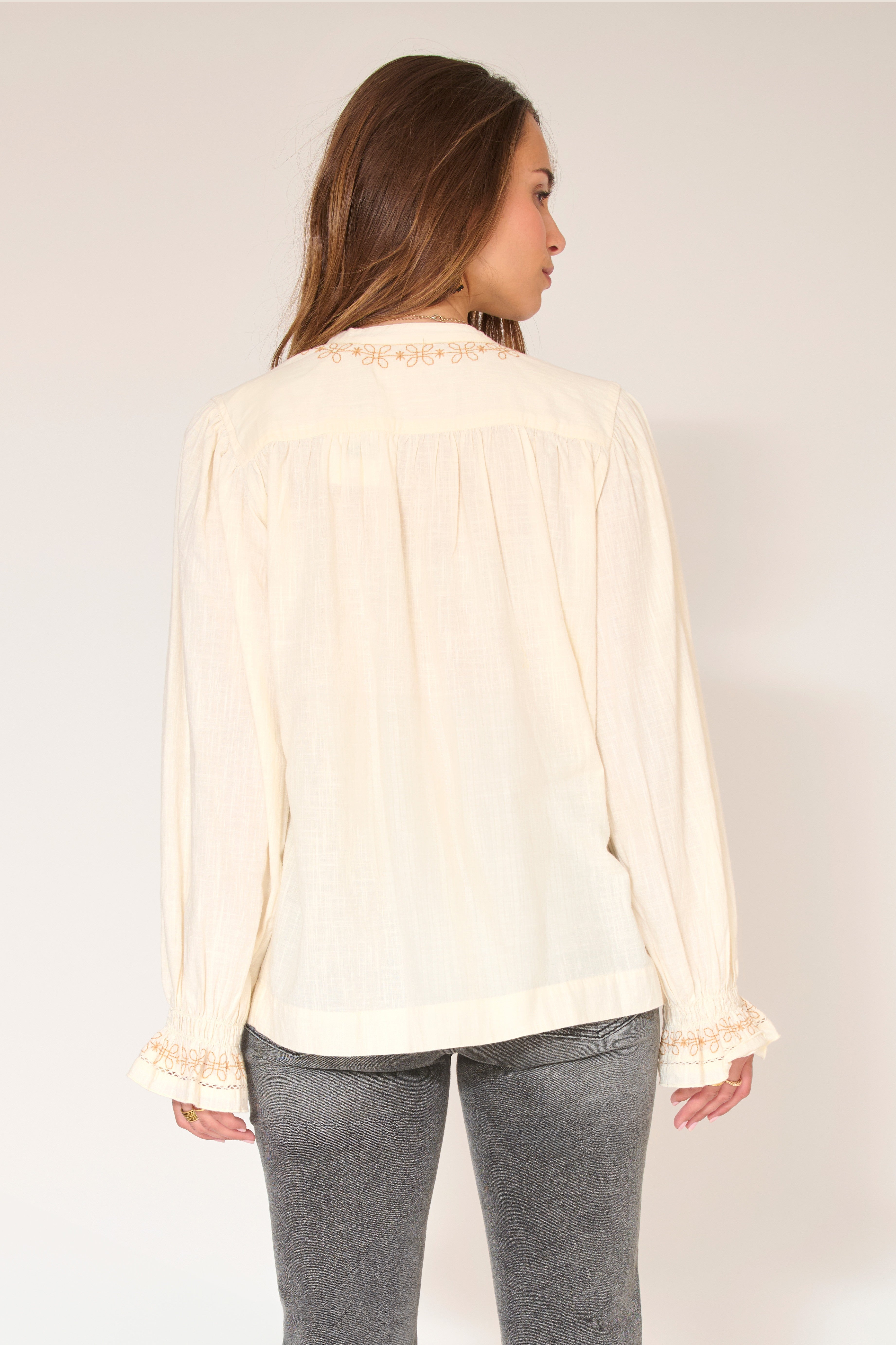 Esta blusa blanca plisada aporta un toque de frescura a tu guardarropa de invierno. Su corte fluido y ligero garantiza comodidad durante todo el día. Combínalo con jeans o una falda para un look casual y moderno.