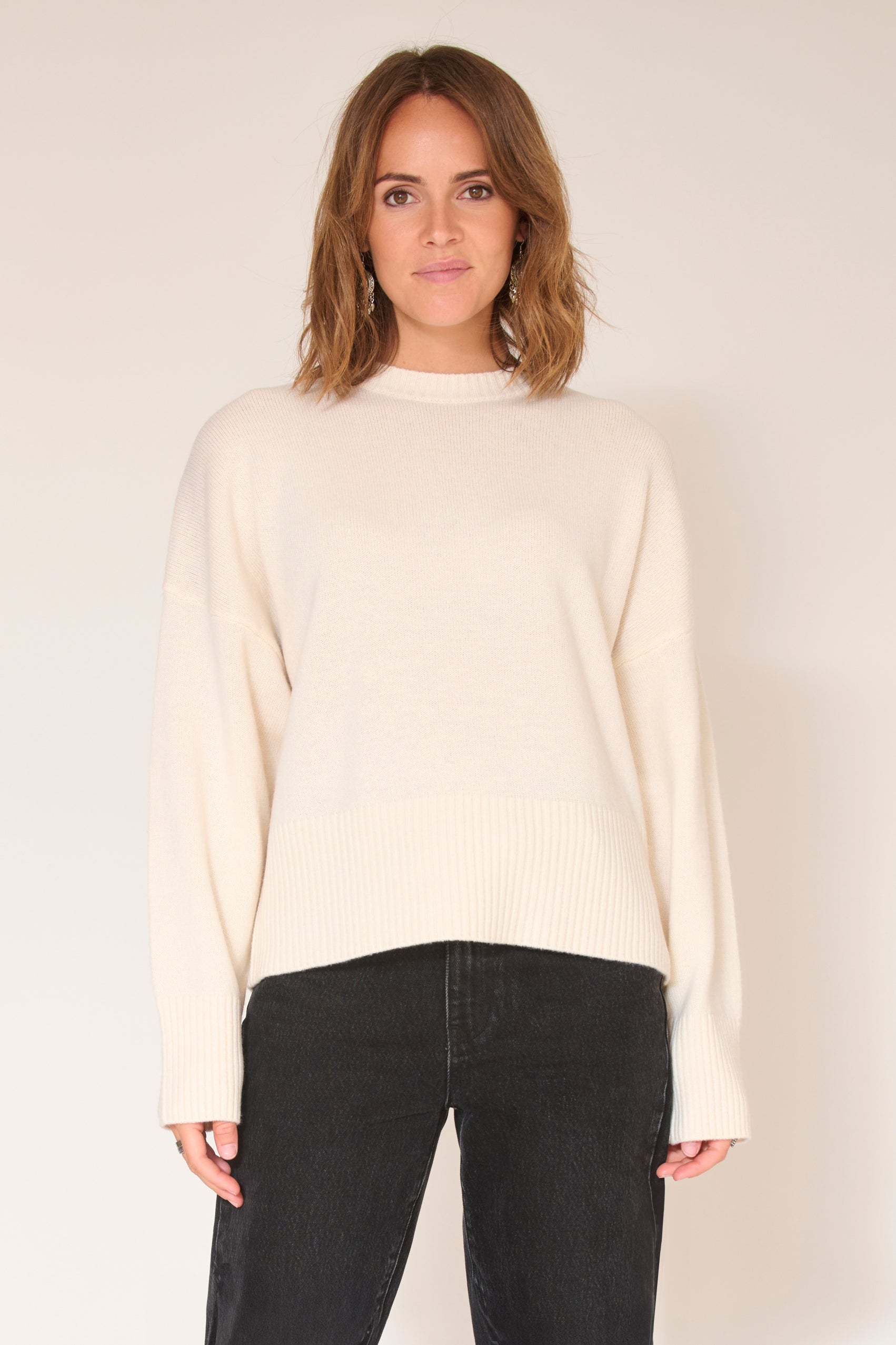 Este jersey de lana con cuello redondo es una opción versátil para los fríos días de invierno. Confeccionado en merino, ofrece calidez y comodidad a la vez que añade un toque de sofisticación a tu conjunto. Su corte entallado y sus acabados acanalados lo convierten en una opción elegante para ocasiones informales o elegantes.