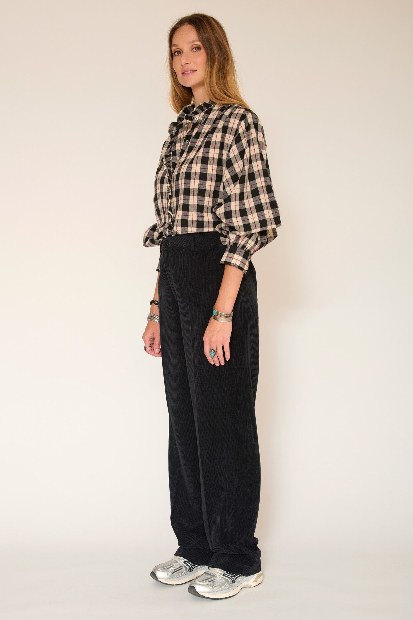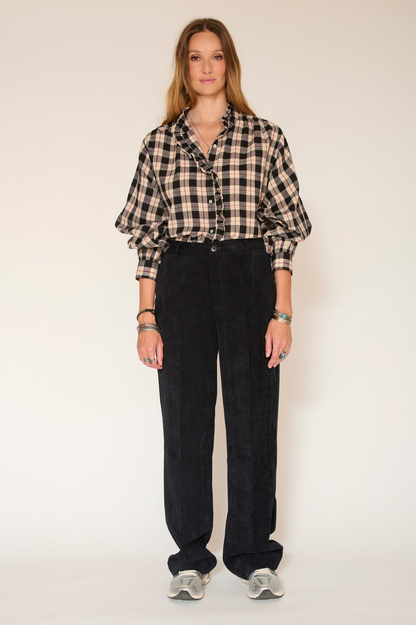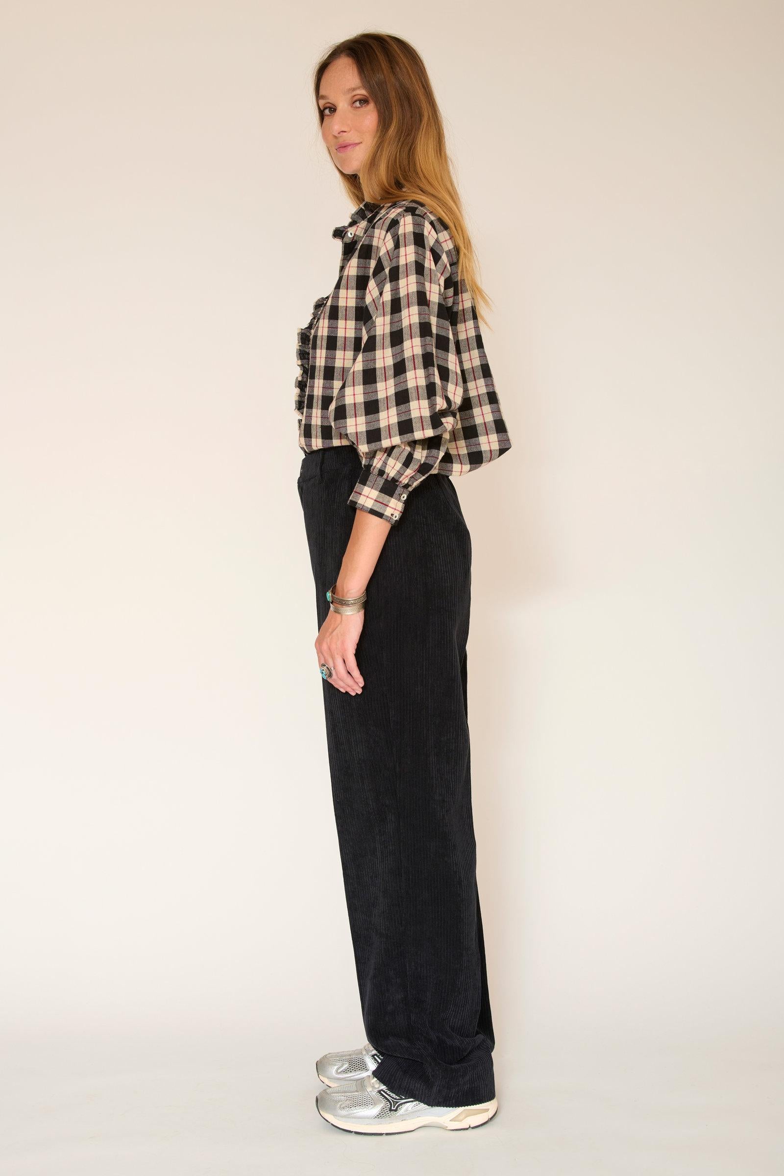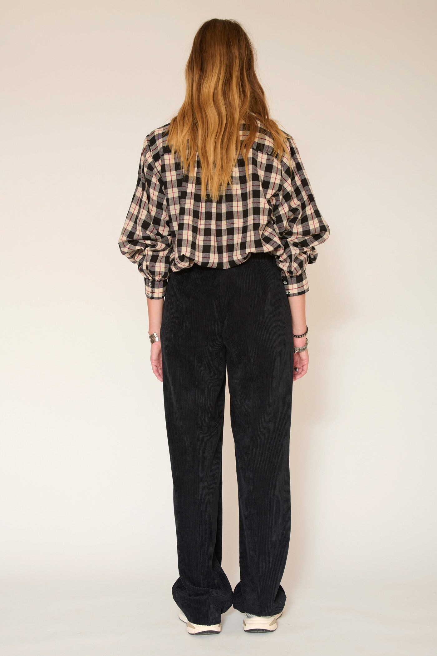 Este estilo es perfecto para combinar con camisas o blusas y lograr un look profesional, pero también se puede usar con tops más informales para un look más relajado. El estampado liso realza su elegancia y se adapta a diferentes estilos.