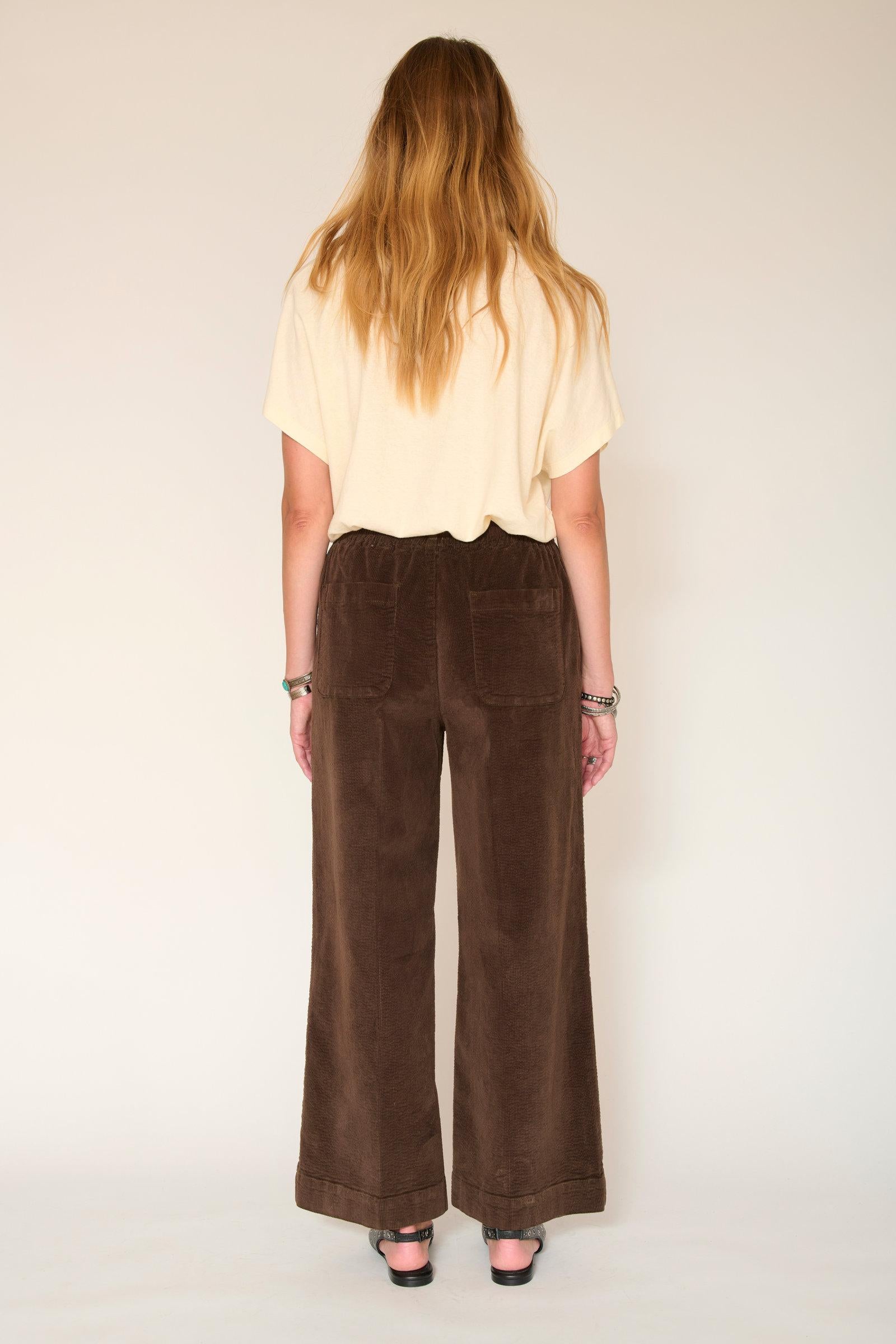 Confeccionados en pana , estos pantalones se distinguen por su tacto suave y durabilidad. Su corte holgado y relajado , junto con una cinturilla elástica , garantiza una sujeción óptima y una comodidad inigualable. Las perneras anchas permiten una gran libertad de movimiento, lo que los convierte en pantalones ideales para el día a día.