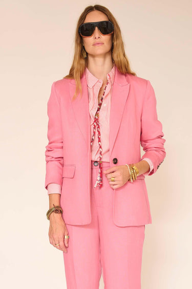 La chaqueta Voline reinventa la sastrería con un look chic y relajado a la vez. Su corte recto, ligeramente estructurado, realza la figura sin dejar de ser cómodo. Confeccionada en una fluida mezcla de lino, destaca por su impecable caída y su estilo fácil de llevar. Combinada con una camiseta o blusa, la chaqueta Voline aporta un toque elegante y moderno, ideal tanto para looks informales como para los más elegantes.