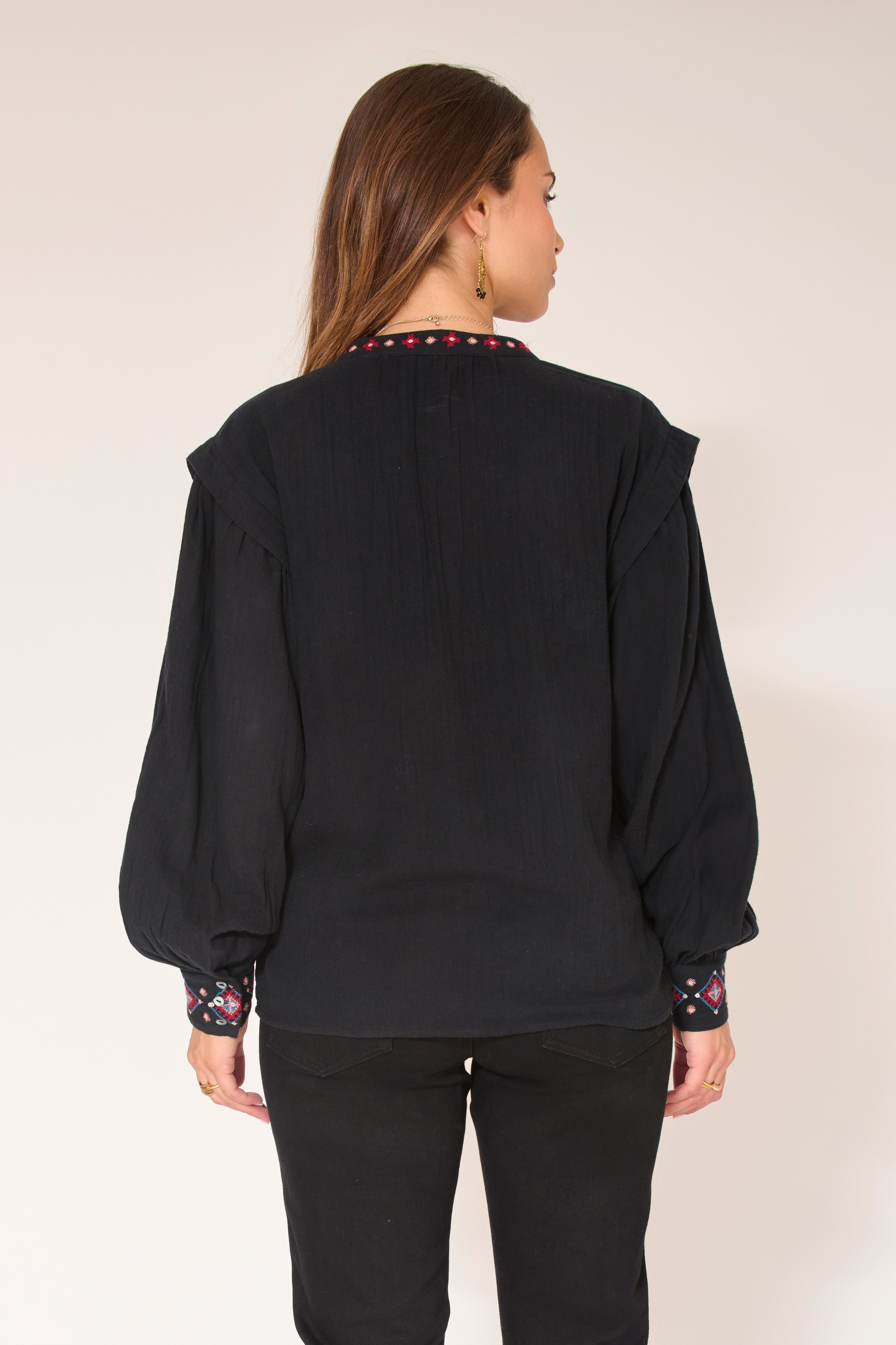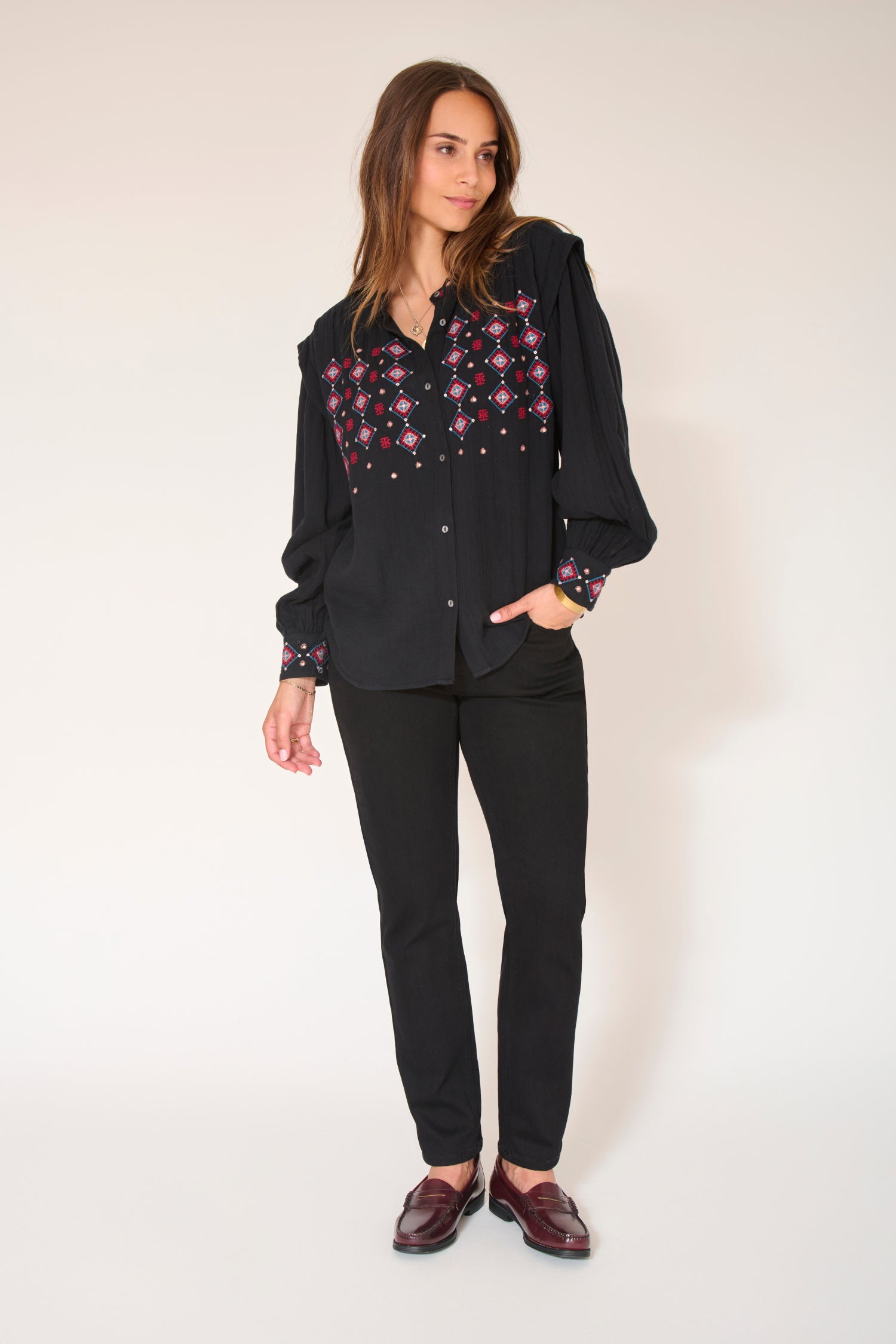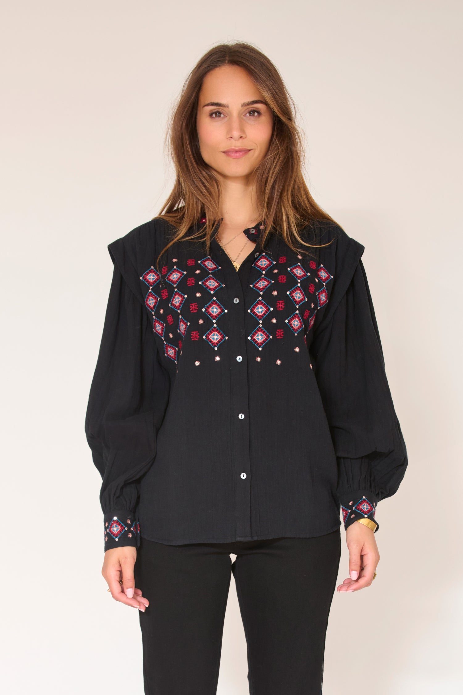 Nuestra camisa CESAR de gasa de algodón destaca por sus estampados rojos y azules. Ideal para lucir un estilo trendy y destacar esta temporada.