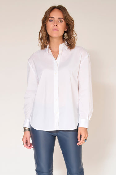 Camisa de algodón con botones y manga larga, CIENAGA tiene un corte recto y cuello alto, combina perfectamente con un vestuario de chica trabajadora durante la semana, o más bien casual para el fin de semana.