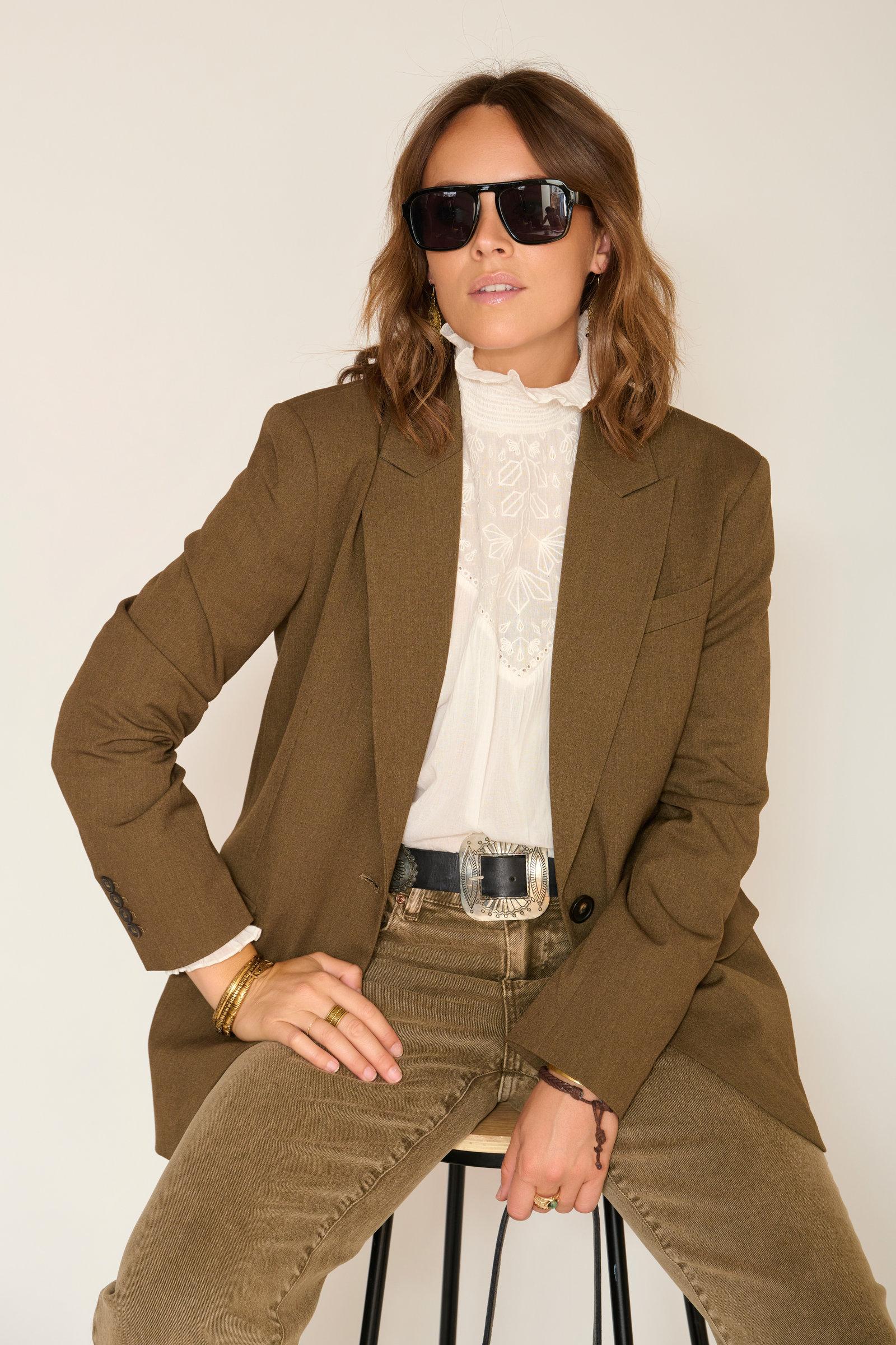 - Corte: Su corte holgado permite un look relajado pero elegante. La espalda es ligeramente más larga, con una abertura en forma de lágrima que realza su elegante diseño.
