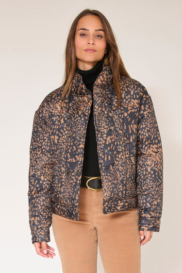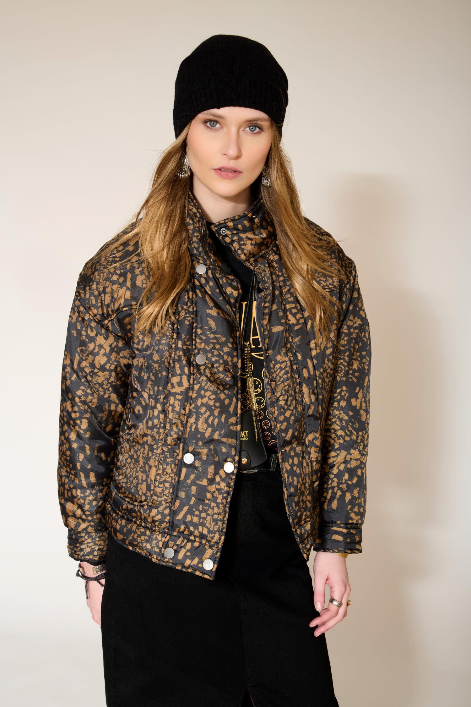 Nuestra chaqueta MITINA te abriga con estilo. Esta chaqueta de manga larga y volumen cuadrado ofrece comodidad con cuello alto. La amplia tira de botones permite dos cierres posibles, mediante botones a presión. El detalle que lo cambia todo, las costuras que resaltan el gran y moderno estampado “puma”.