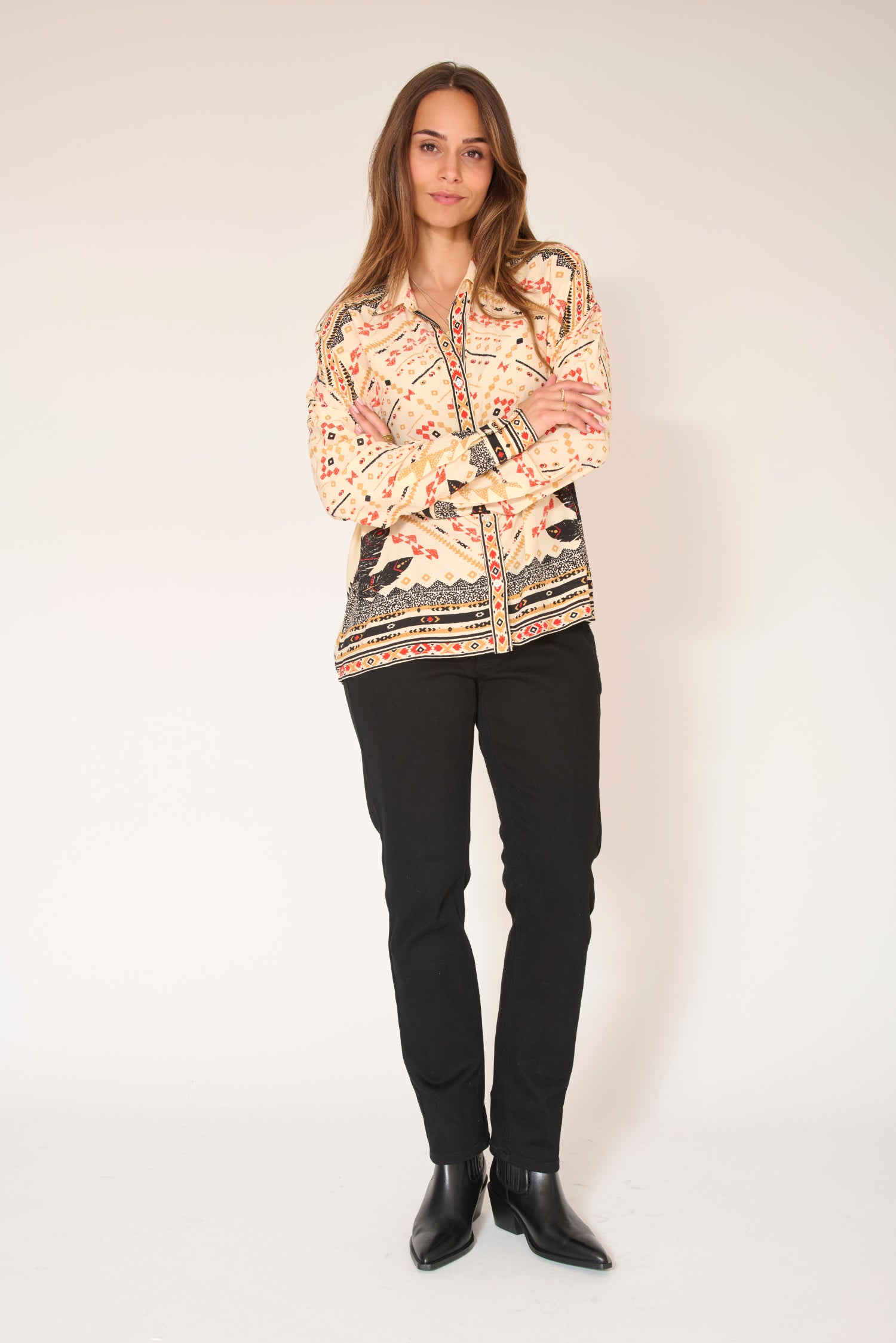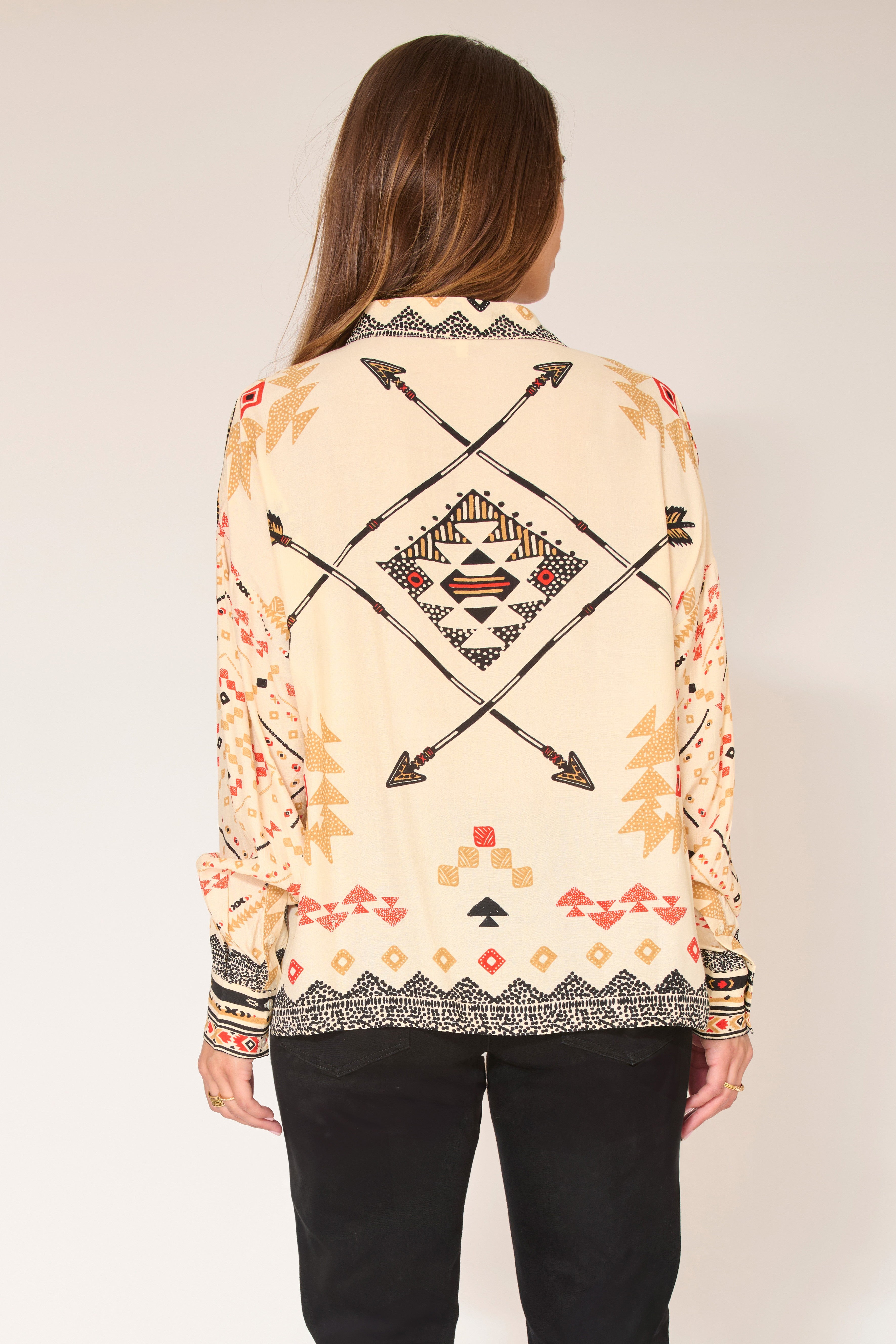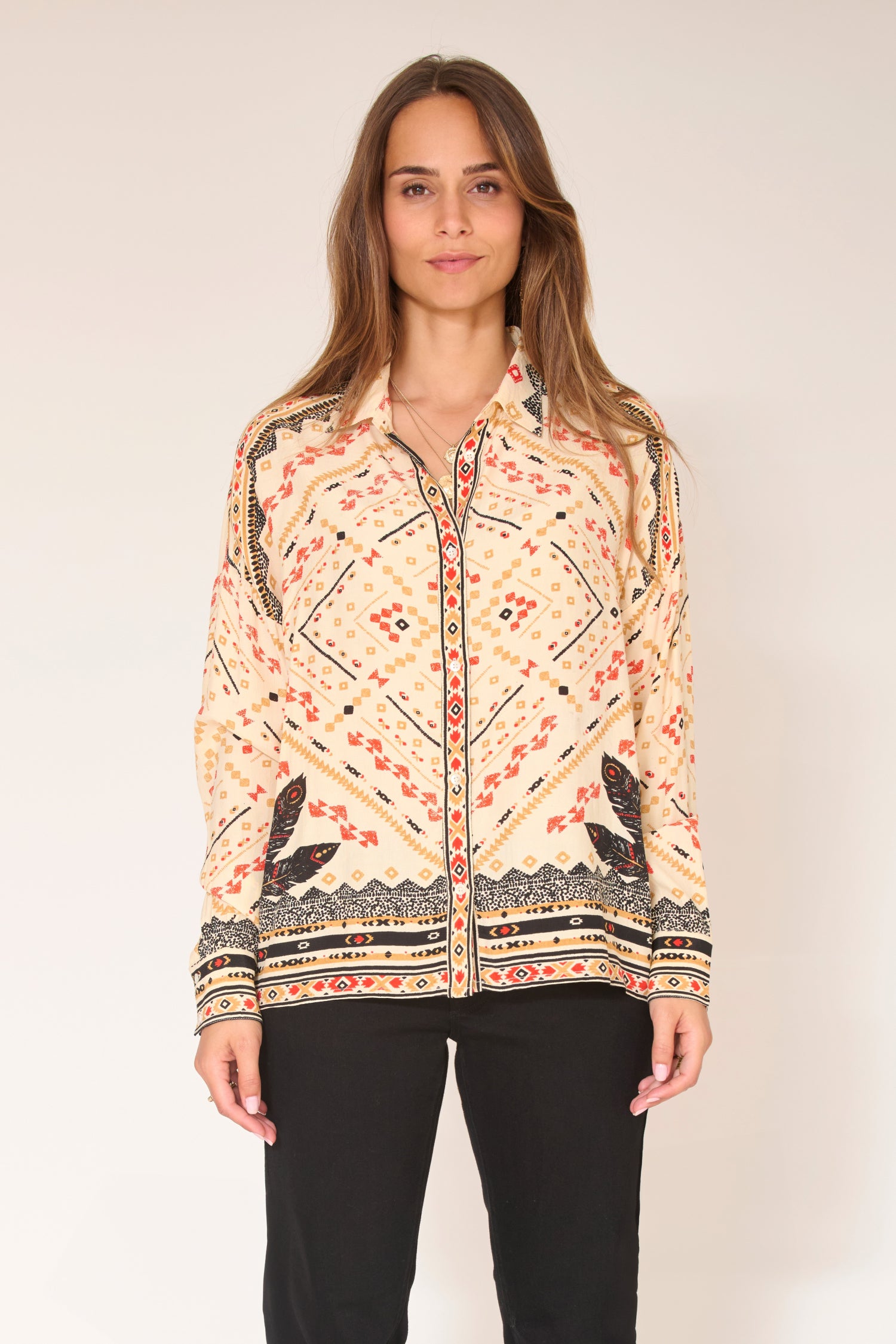 Sé furor este invierno con nuestra camiseta CALOOCAN. Su tejido de viscosa suave y fluido te ofrece una comodidad óptima, mientras que su estampado étnico perfeccionará tu outfit. Ideal para veladas festivas o para añadir un toque de originalidad a tu look diario, esta camisa será tu imprescindible en tu armario.