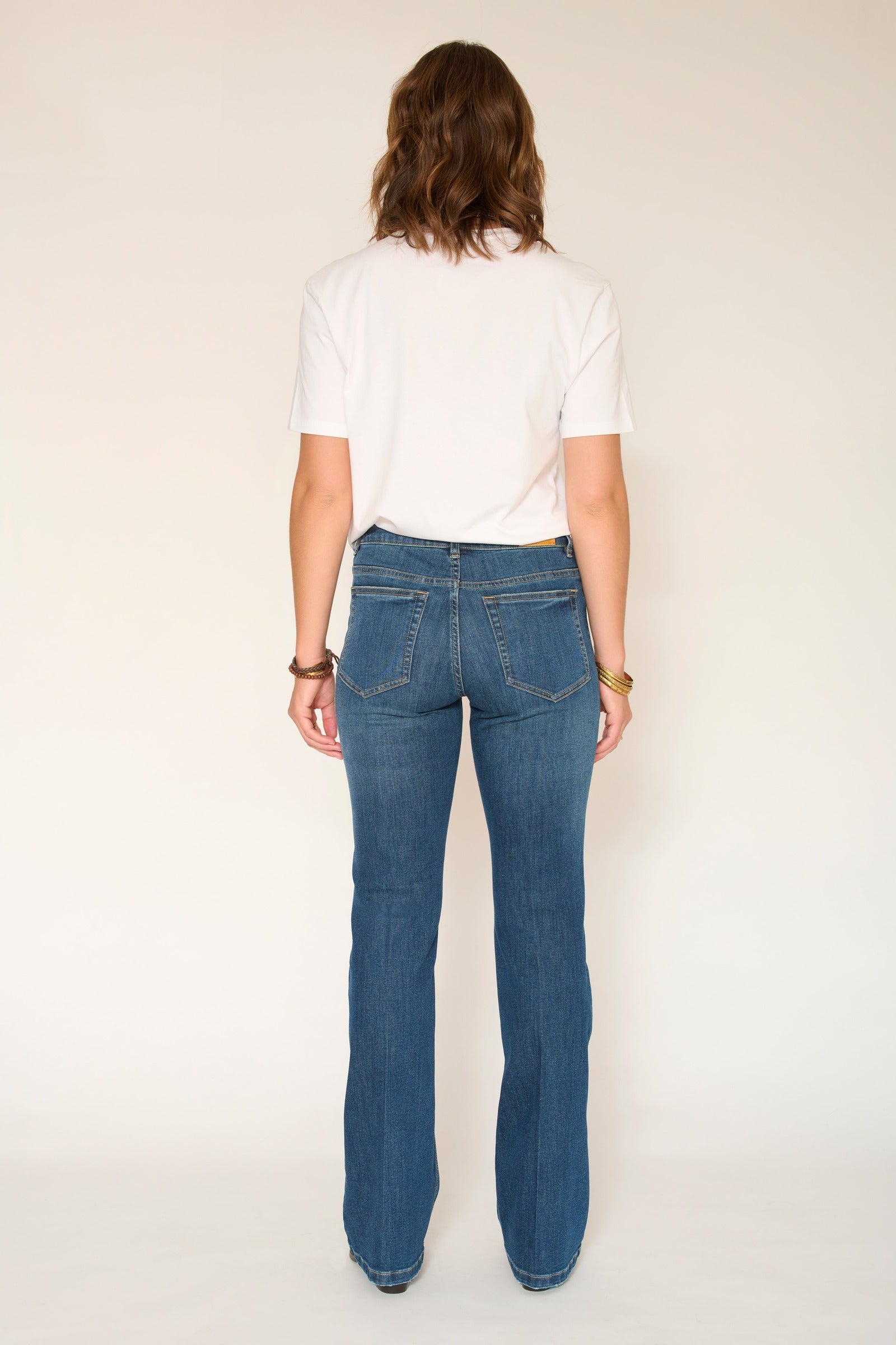 Estos jeans acampanados son perfectos para quienes buscan un look relajado pero elegante. Combinan a la perfección con tops ajustados o blusas vaporosas, creando un look equilibrado. Su corte acampanado permite llevarlos con botines o tacones, realzando la silueta.