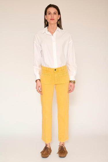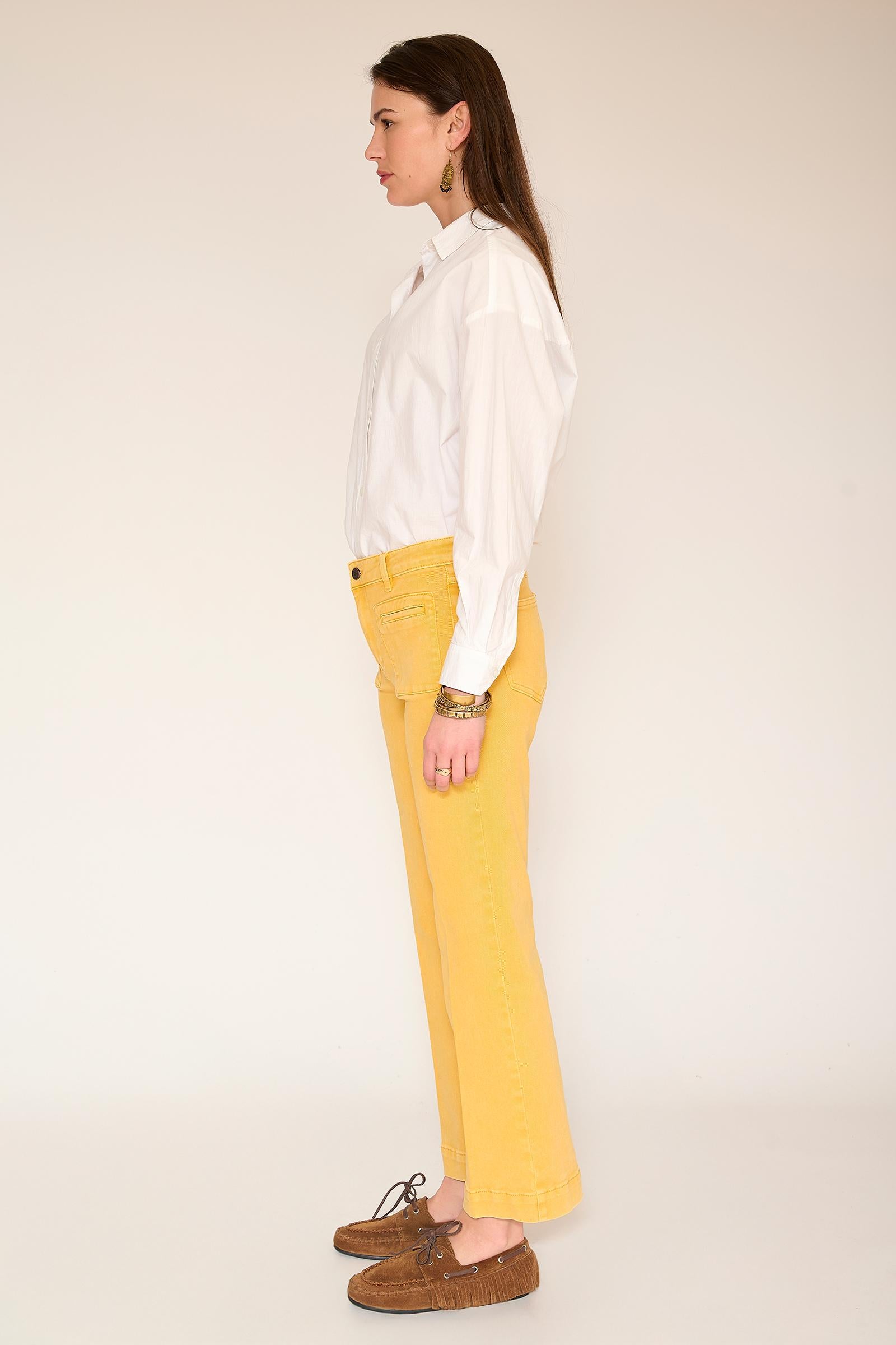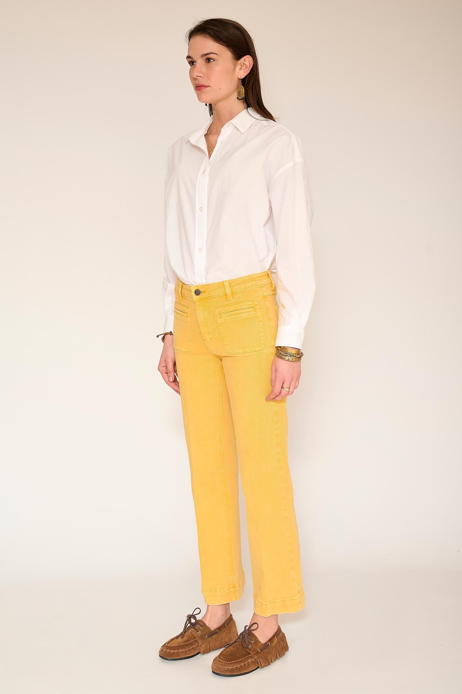 Con su corte atrevido y estilo retro, The Bonnie Pacific Drill reinventa los jeans con una silueta estructurada y decididamente femenina. La cintura alta estiliza la figura, mientras que la pernera recta ligeramente acampanada alarga la silueta para un look vintage y moderno a la vez. Confeccionado en denim de algodón orgánico, ofrece una caída preciosa y una sensación auténtica, fiel al espíritu de los jeans icónicos. Los bolsillos de parche en la parte delantera le aportan carácter y un toque chic y práctico. Estos jeans tienen personalidad, son fáciles de combinar y aportan estructura a cualquier look sin ser recargados.