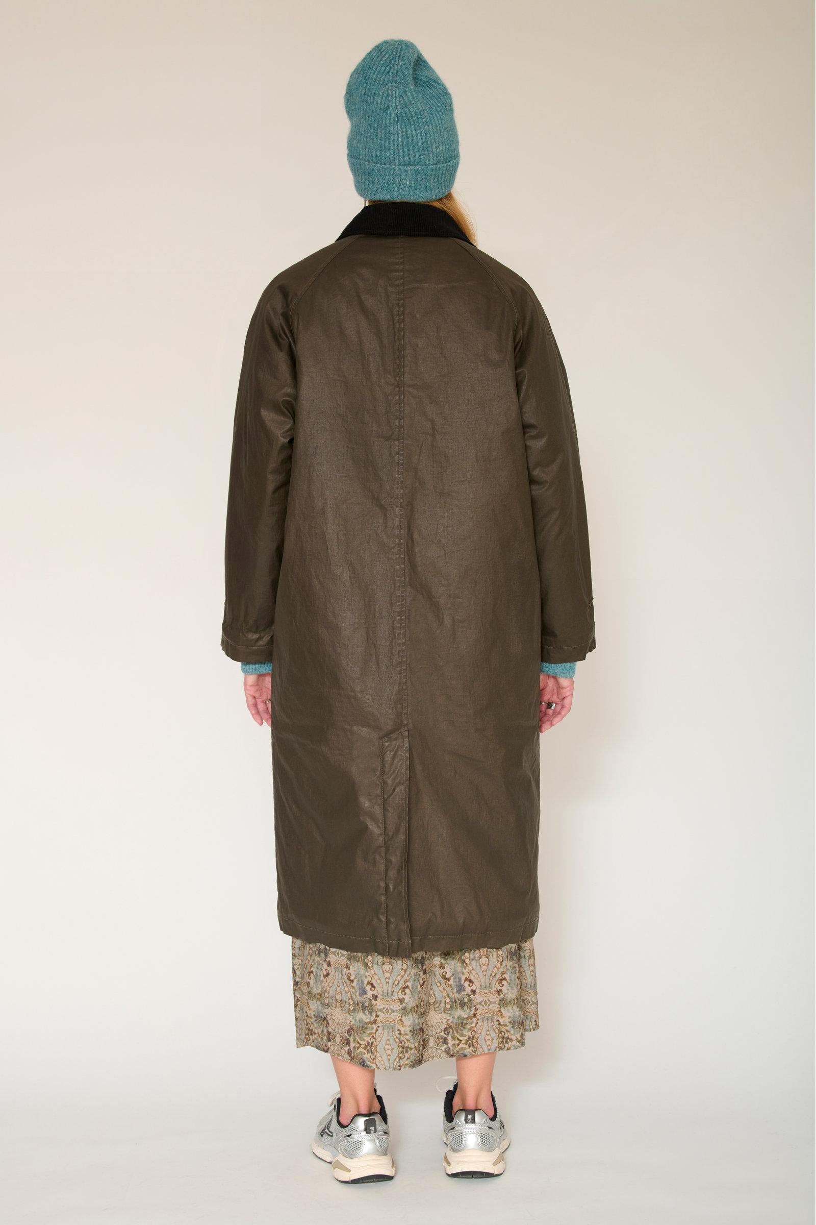 - Cuello: El cuello negro contrastante añade una dimensión visual especial al abrigo.