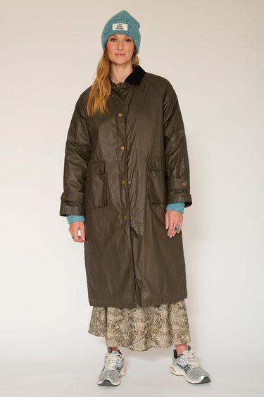 El abrigo largo MAGNUS en color caqui es una prenda de abrigo que combina elegancia y practicidad. Su corte holgado garantiza una comodidad óptima, permitiéndote llevar capas debajo sin sacrificar tu estilo.