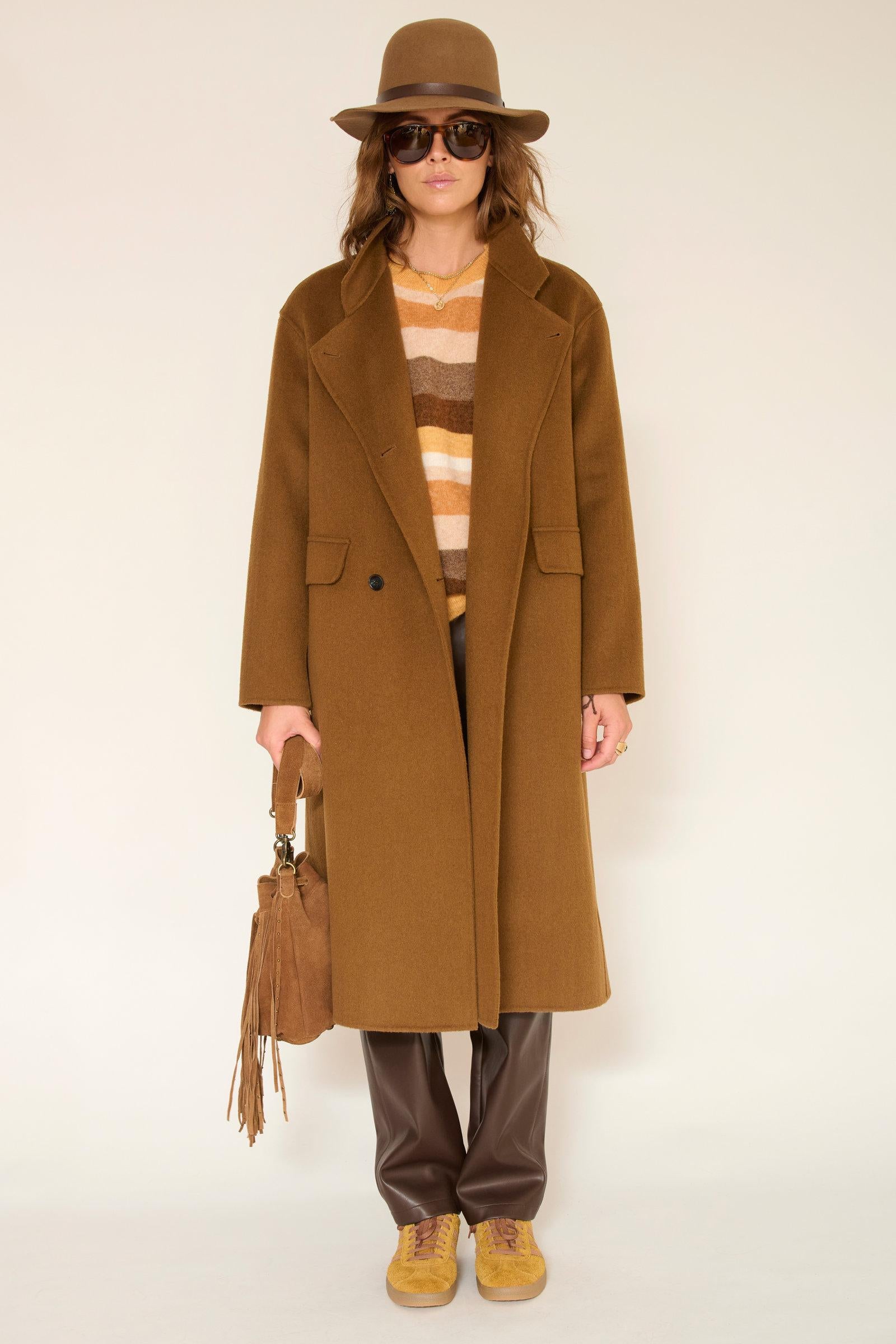 El abrigo largo MEXI NUTS destaca por su cálido color marrón , perfecto para añadir un toque otoñal a tu armario. Confeccionado con una mezcla de 50 % lana, 40 % poliéster y 10 % otras fibras , ofrece calidez y comodidad, ideal para las estaciones más frías.