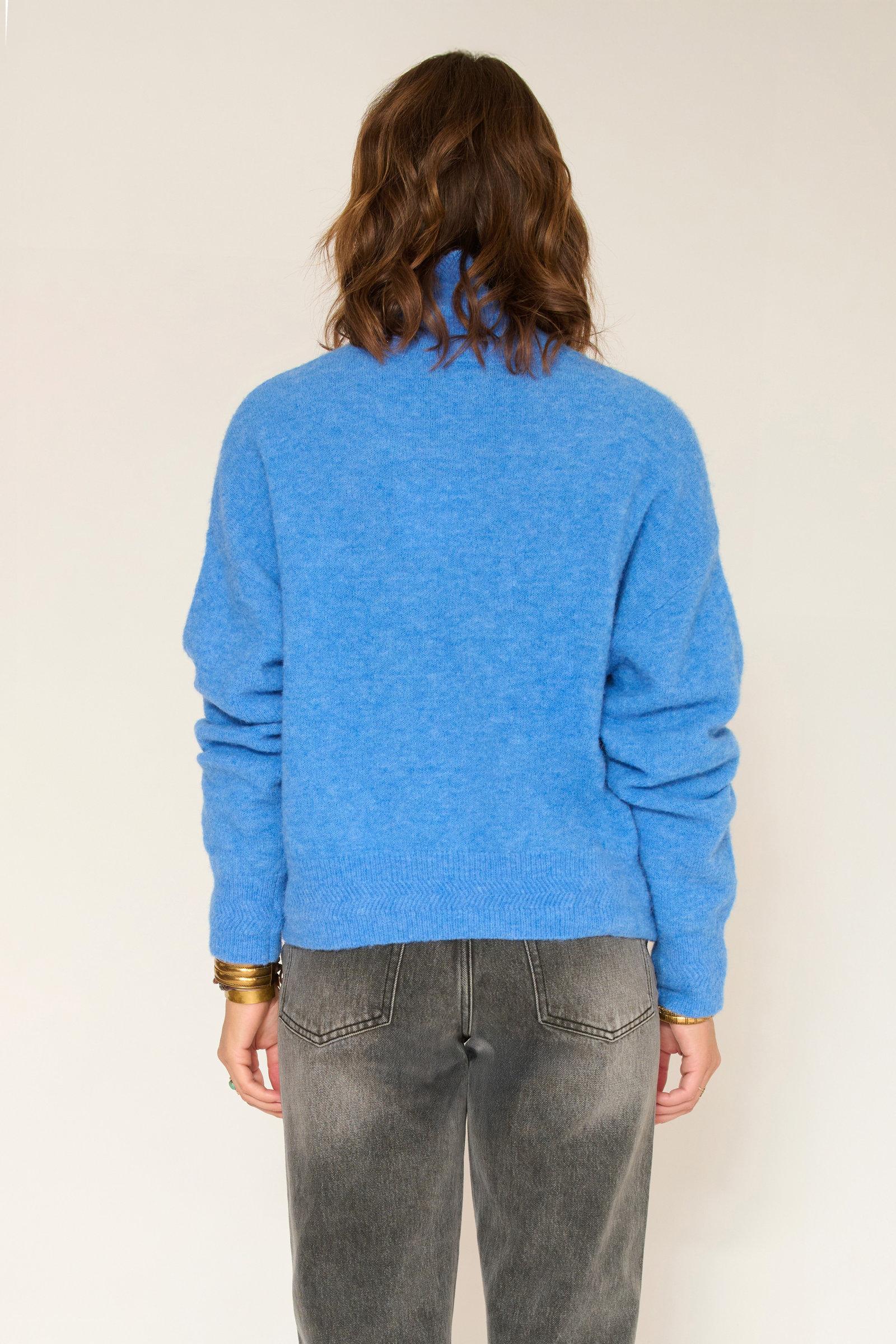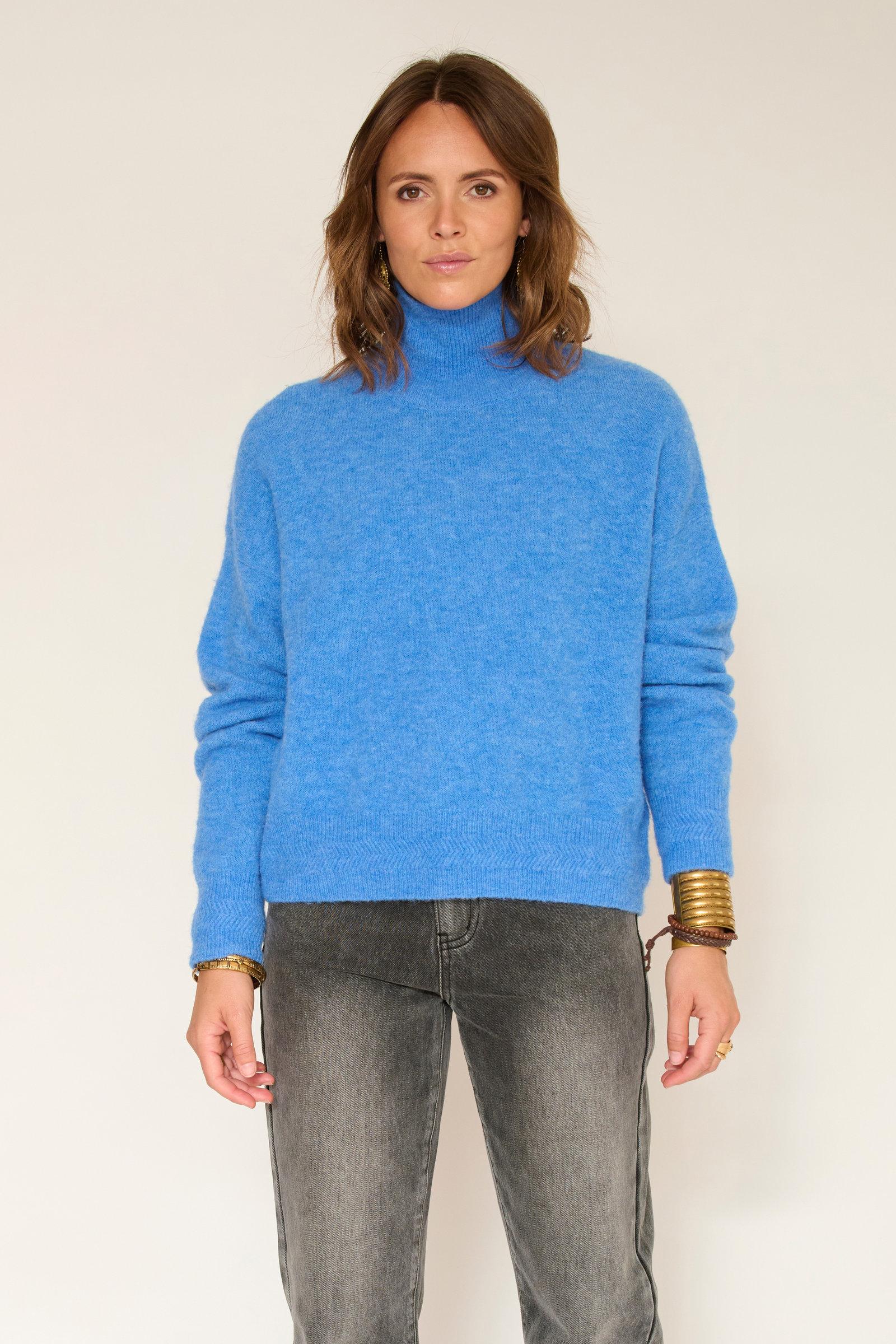 El suéter KADRA BLUE es un top de punto que destaca por su color azul brillante , aportando un toque de frescura a tu armario. Este modelo tiene un corte ligeramente oversize que ofrece comodidad y estilo, ideal para las estaciones más frías.