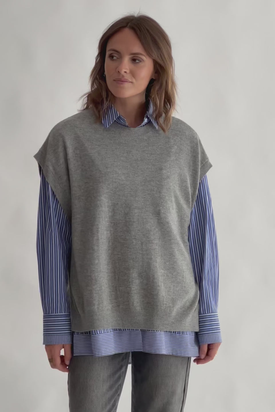 El suéter sin mangas KLEE GREY es imprescindible para quienes buscan comodidad y estilo. Su color gris liso lo convierte en una prenda versátil, fácil de combinar con otras prendas de tu armario.