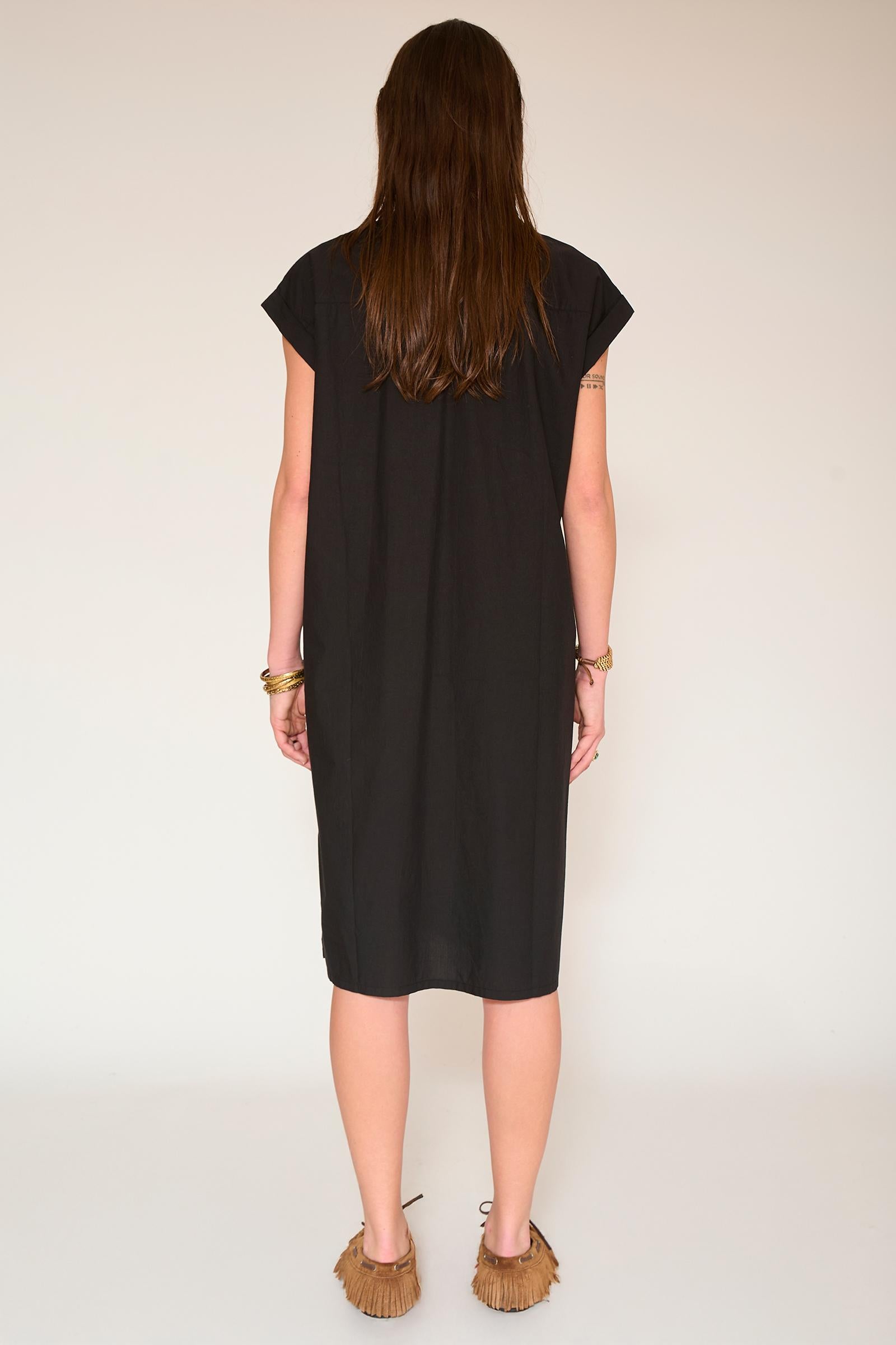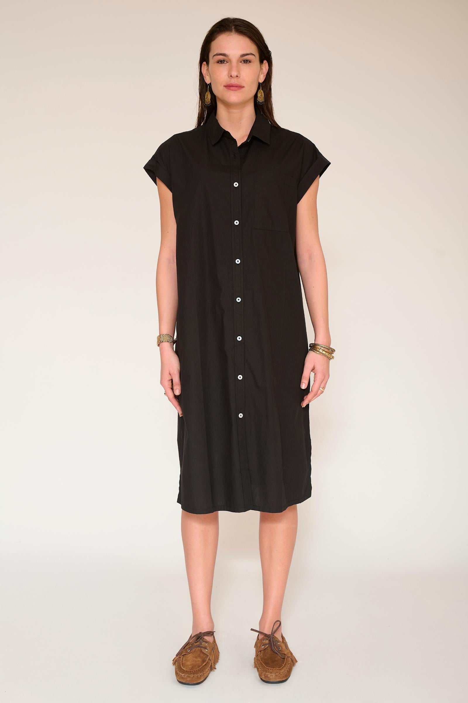 El vestido Rayna irradia elegancia natural con su corte recto y fluido, mangas cortas ligeramente caídas y tapeta de botones completa. Cómodo y fácil de llevar, está disponible en capuchino o caqui, dos tonos atemporales que combinan con todo. Llévalo tal cual para un look desenfadado o con cinturón para definir tu silueta, tanto en la ciudad como en vacaciones, sin preocupaciones.