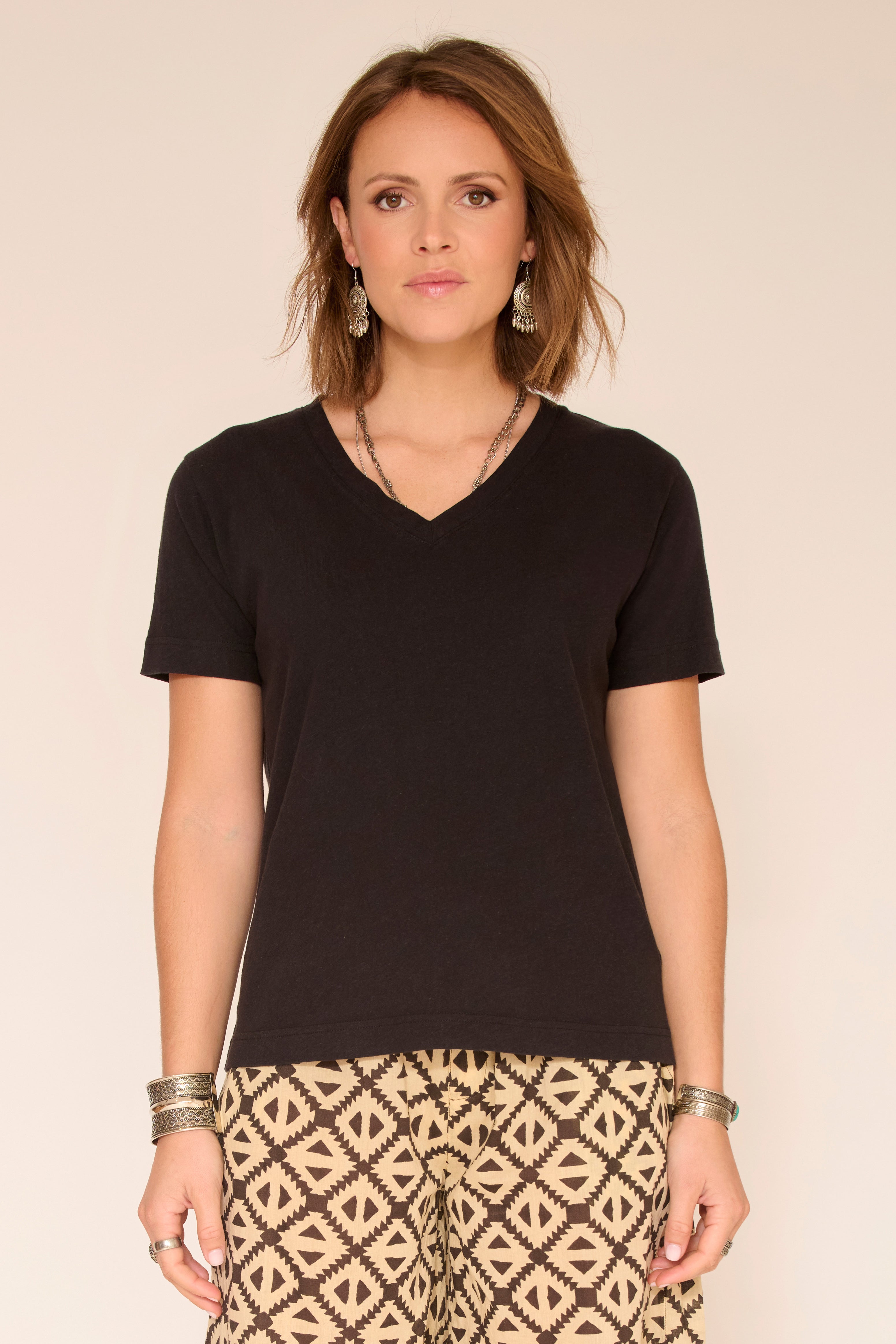 Su corte fluido y su delicado escote en V aportan un toque de feminidad, manteniendo un look natural y relajado. Confeccionado en jersey suave y ligero, ofrece una comodidad óptima para el día a día.