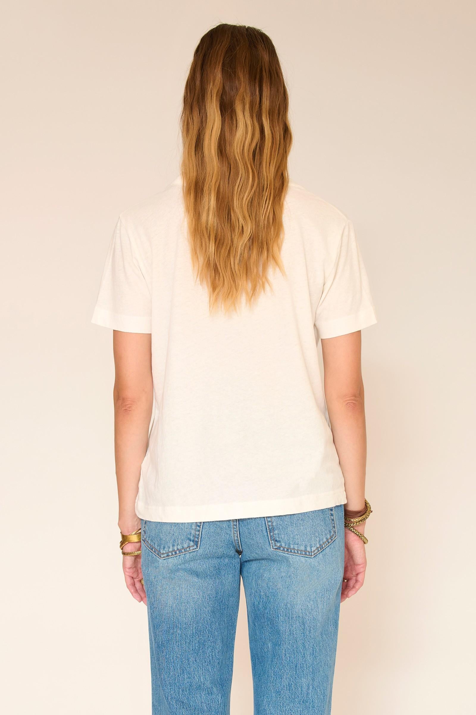 Su corte fluido y su delicado escote en V aportan un toque de feminidad, manteniendo un look natural y relajado. Confeccionado en jersey suave y ligero, ofrece una comodidad óptima para el día a día.