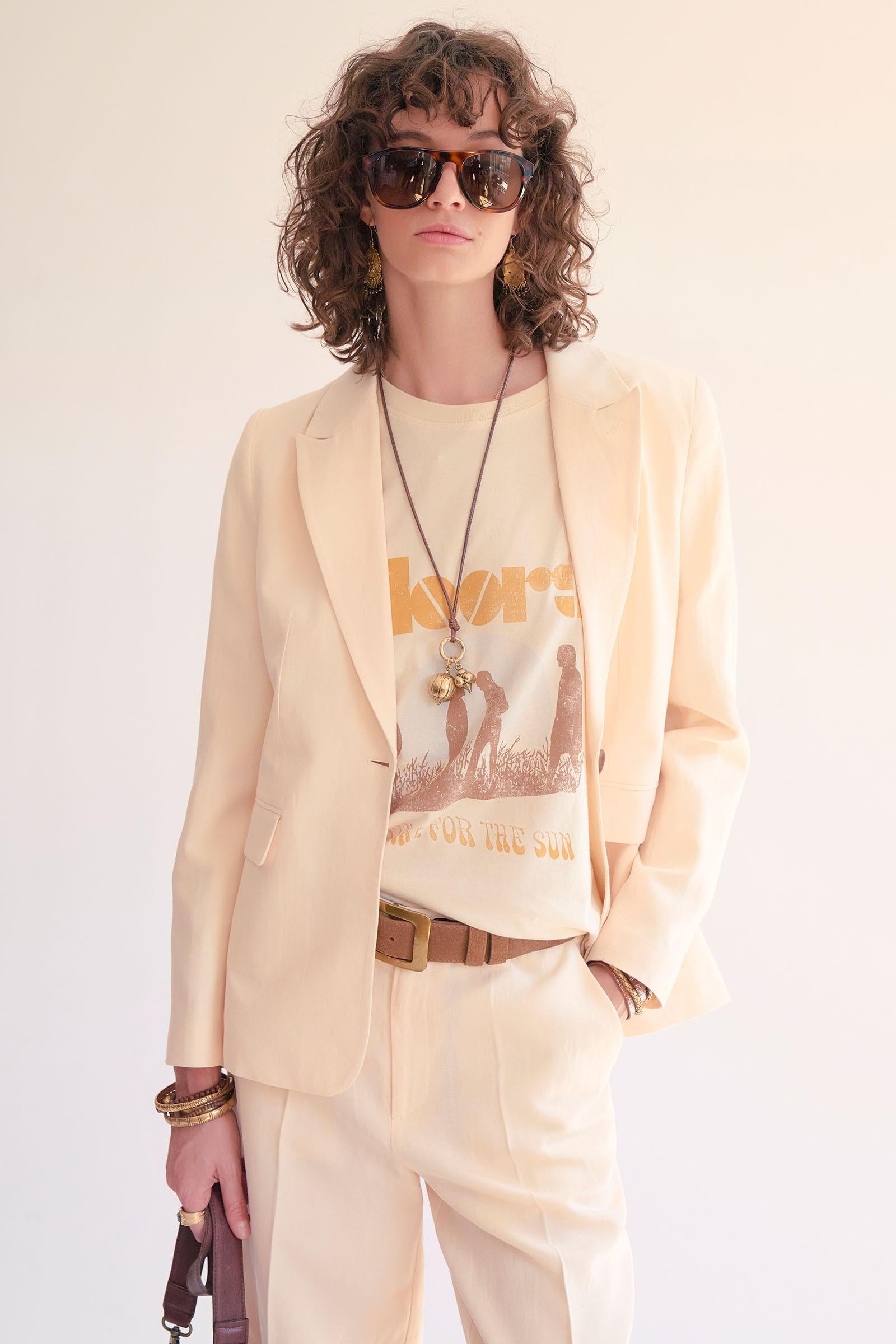 Diseñada como una prenda esencial de cualquier armario, la chaqueta Vayo puede llevarse como parte de un conjunto coordinado o con una prenda estampada para un sutil contraste. Una americana atemporal, fácil de incorporar tanto a diario como a looks más formales.
