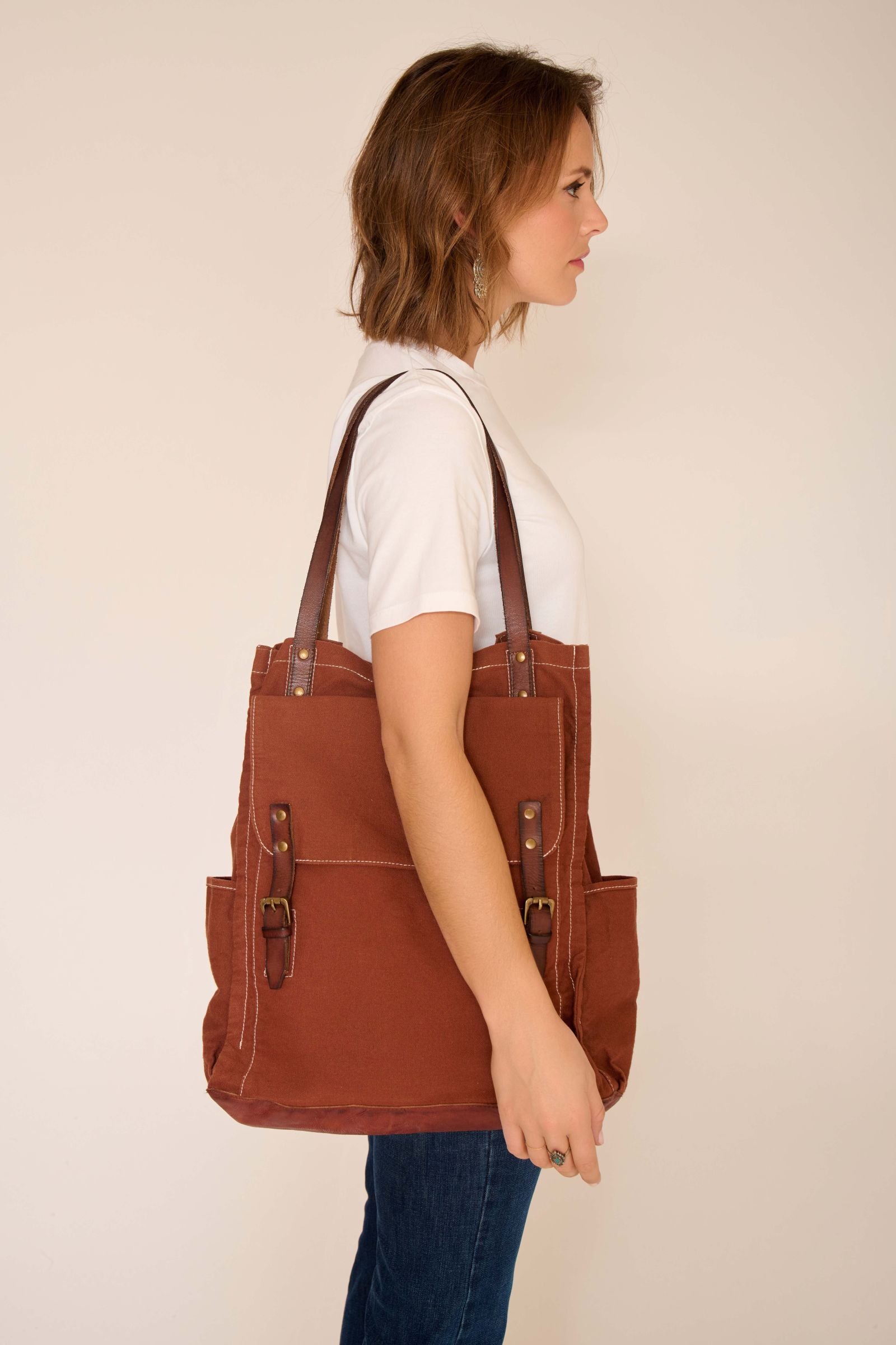 Le sac BENSON, confectionné en cuir véritable et en canvas de coton ton sur ton, se distingue par ses lanières élégantes sur l'avant. Ce modèle combine à la perfection praticité et style, devenant ainsi l'accessoire idéal pour toutes vos sorties.