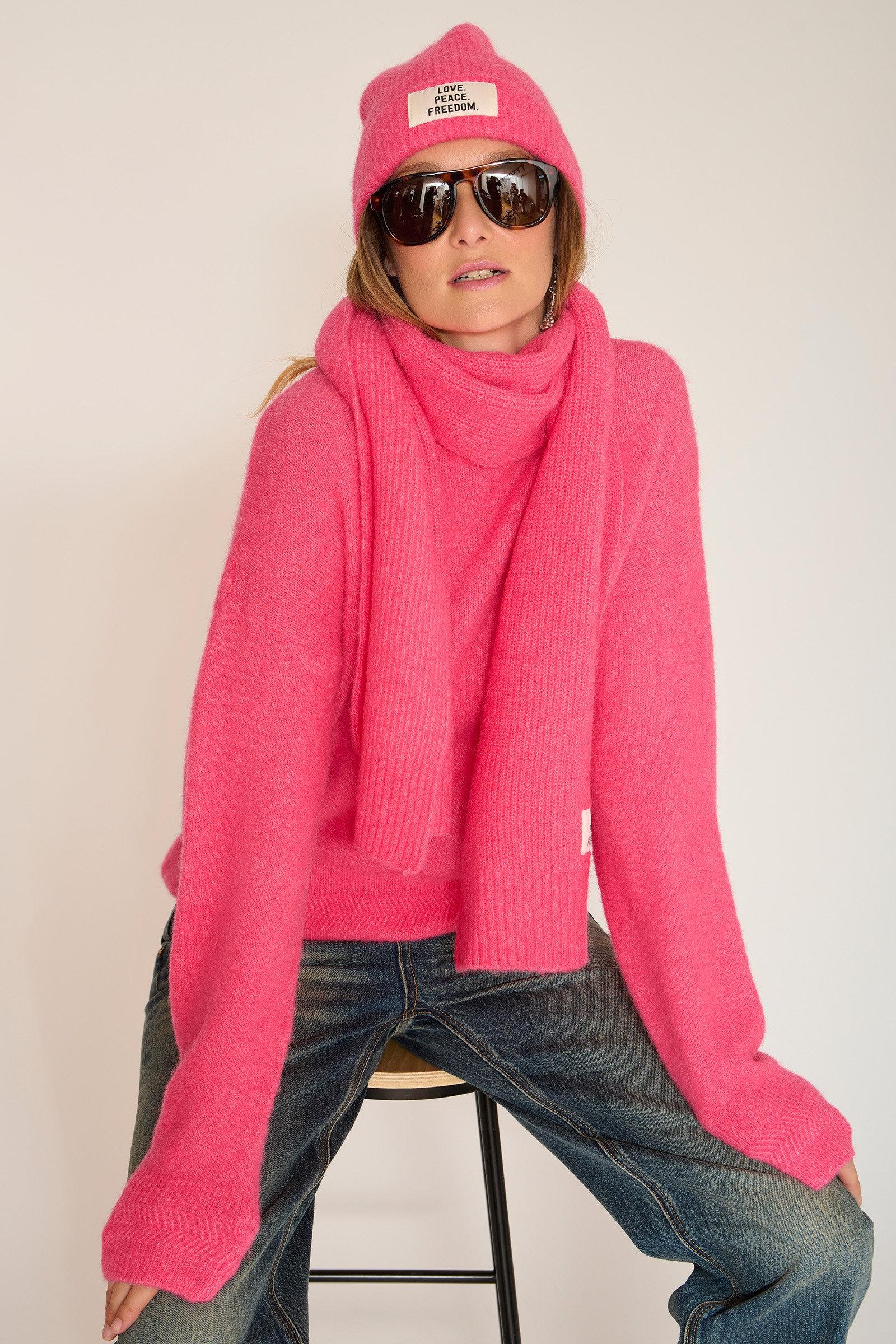 L'écharpe FEDORA PINK se distingue par sa teinte rose vif, apportant une touche de couleur dynamique à toutes vos tenues. Confectionnée dans une matière doux et chaude, cet accessoire est idéal pour les saisons plus fraîches, vous offrant confort et élégance.