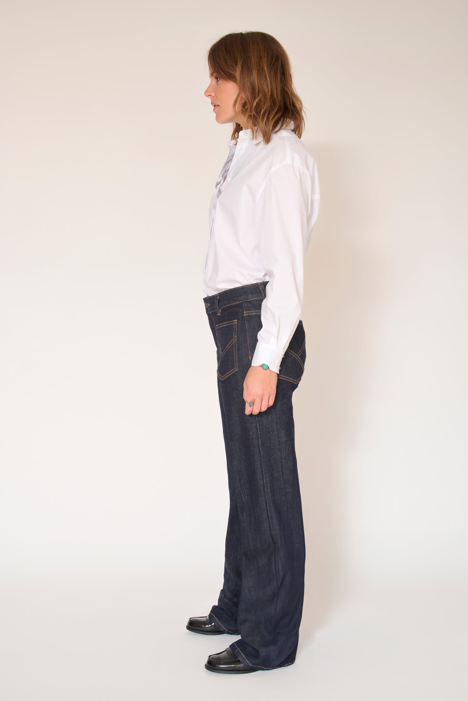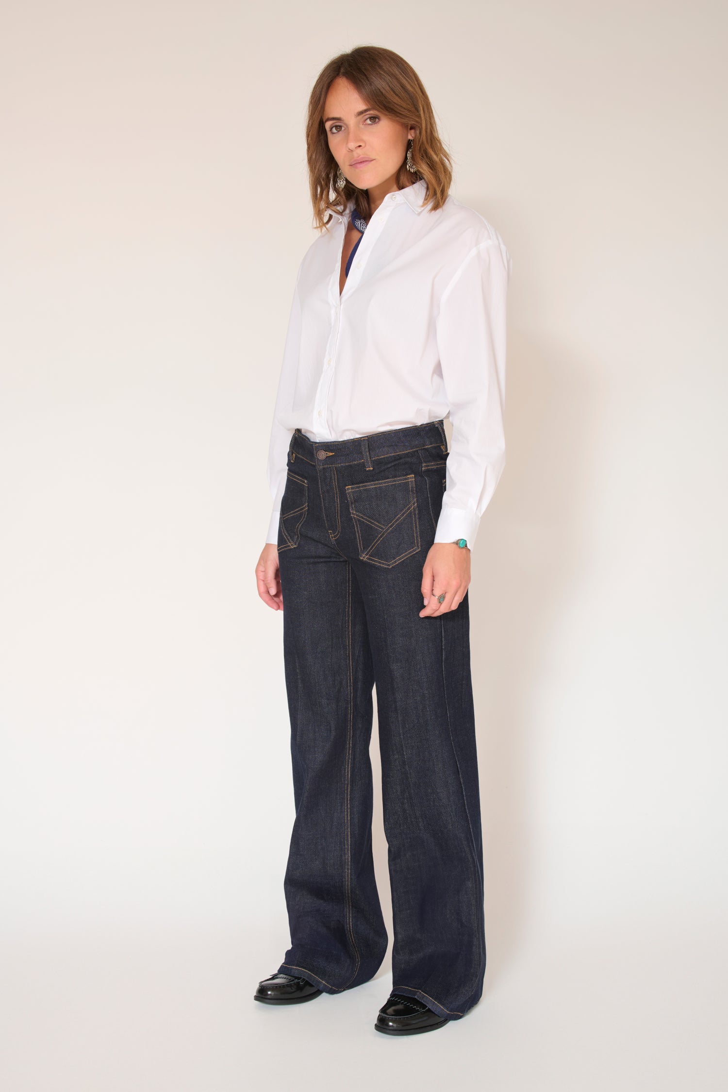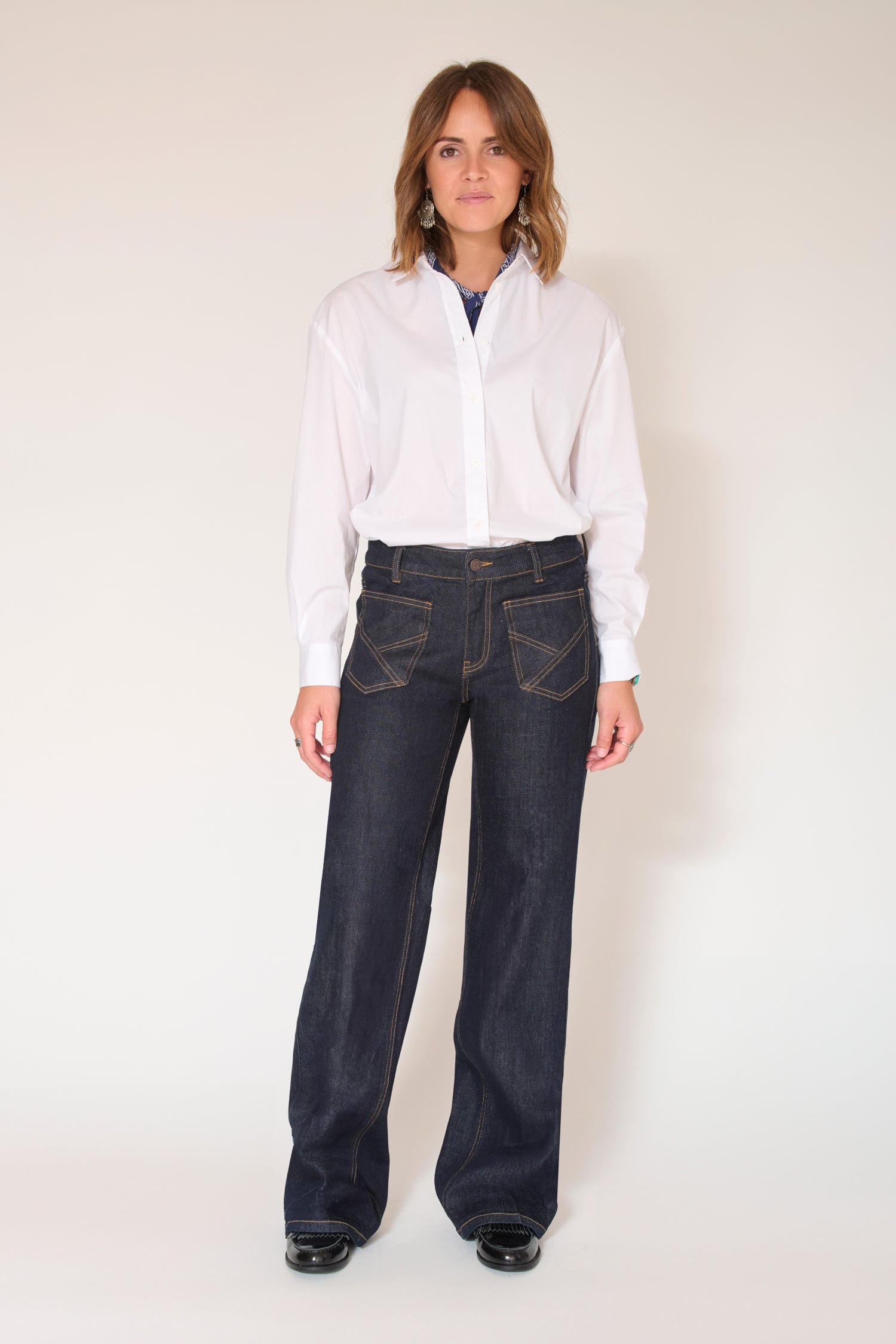 Icône du vestiaire MKT Studio, The Harley Wilson revient cette saison dans un denim de qualité, toujours fidèle à son allure résolument chic.